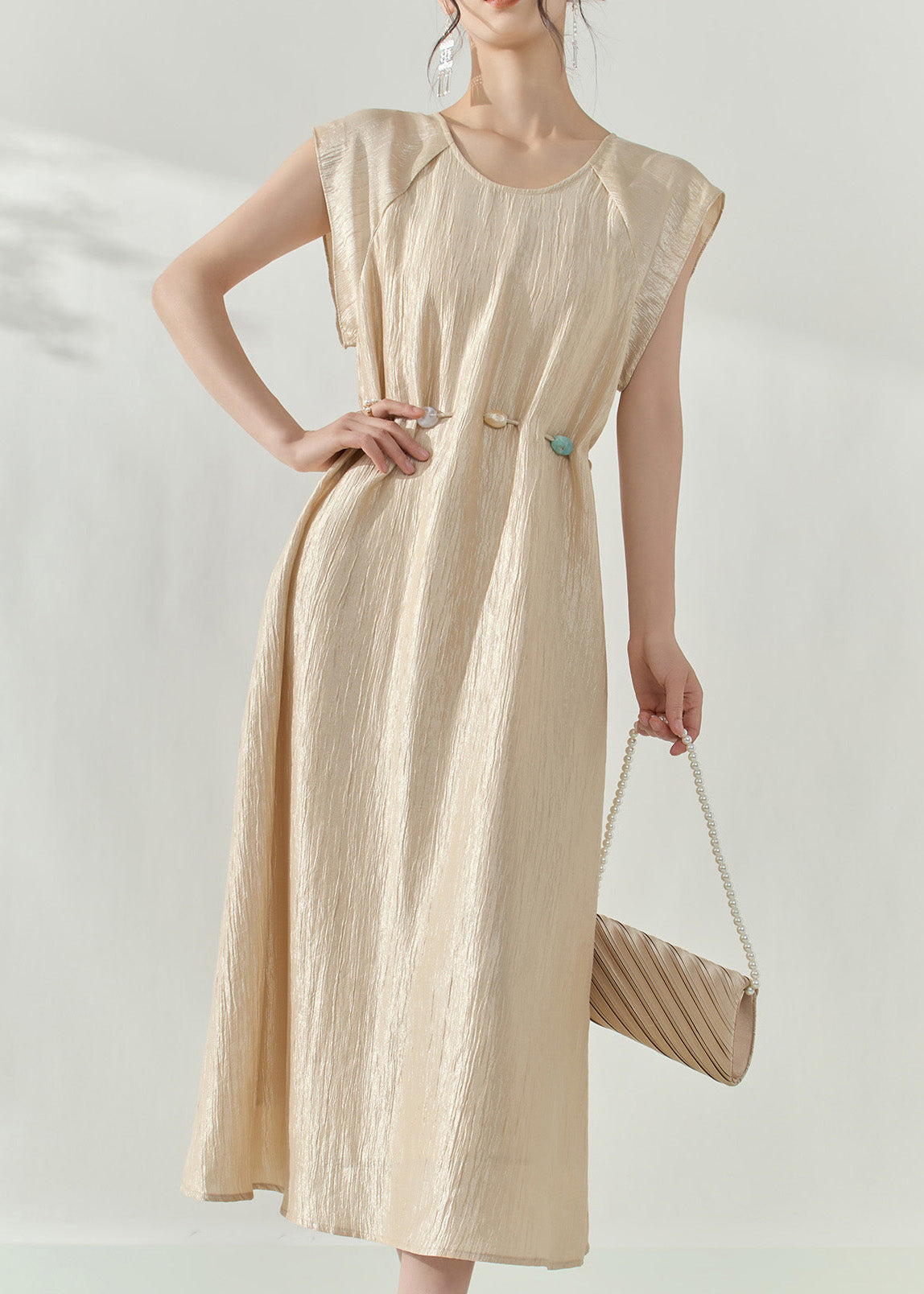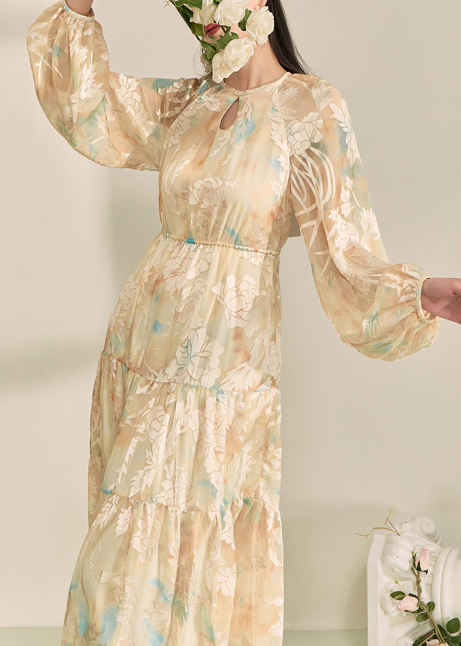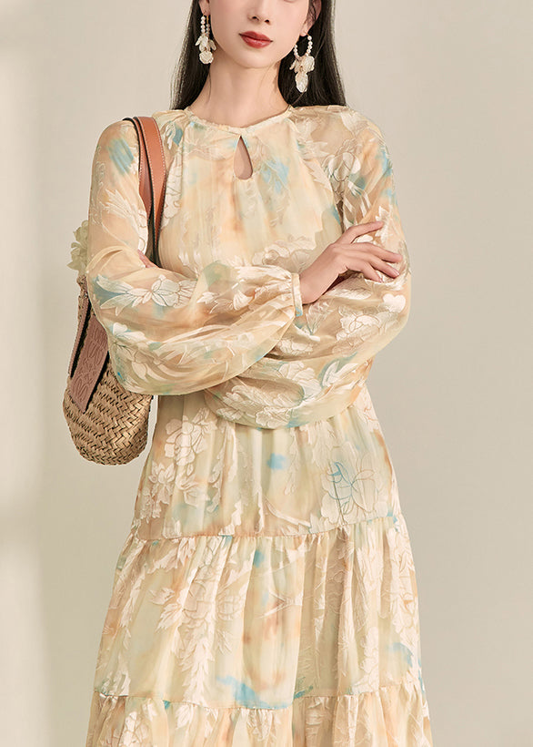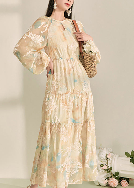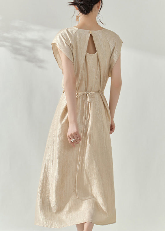Natural Champagne Patchwork Slim Long Dress Summer