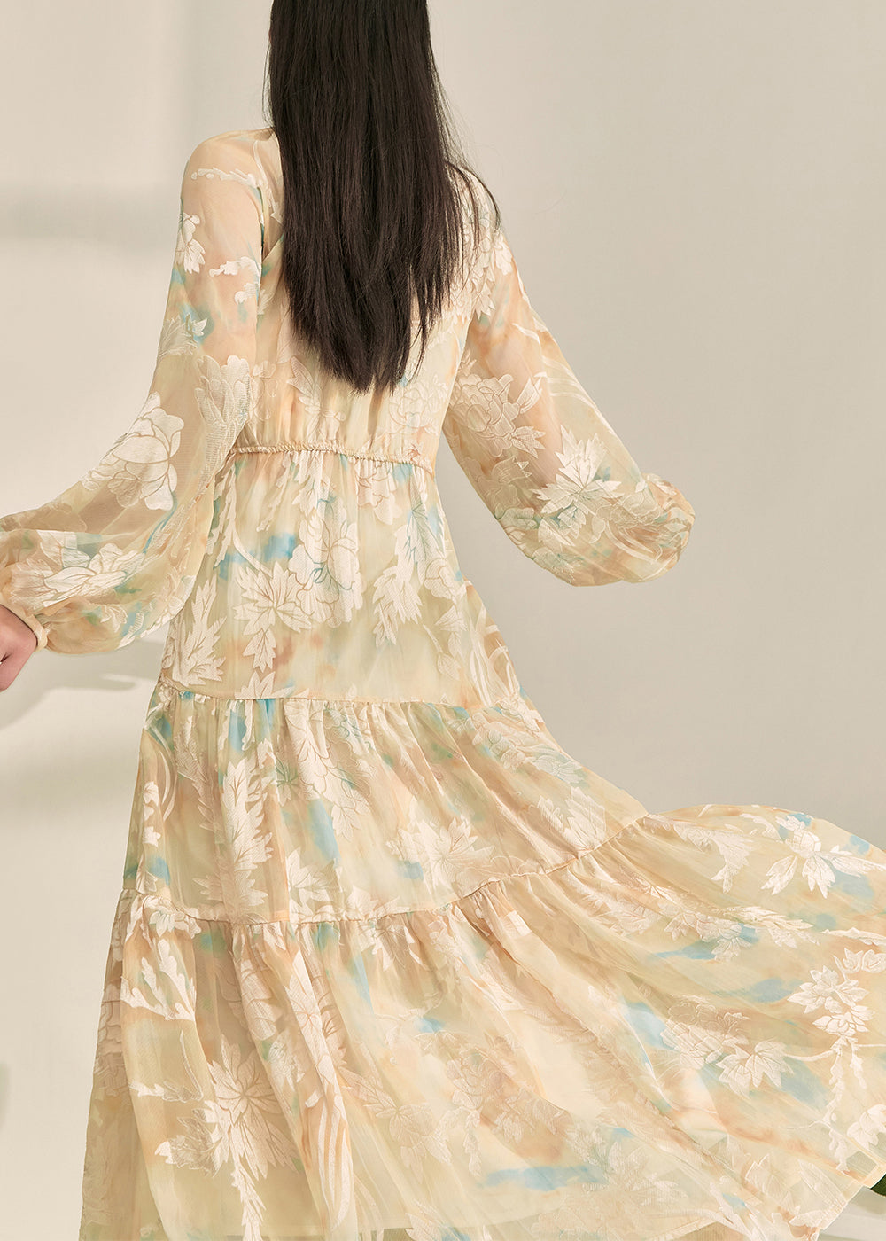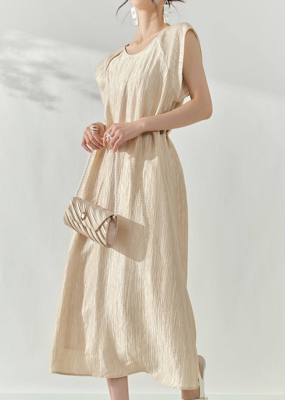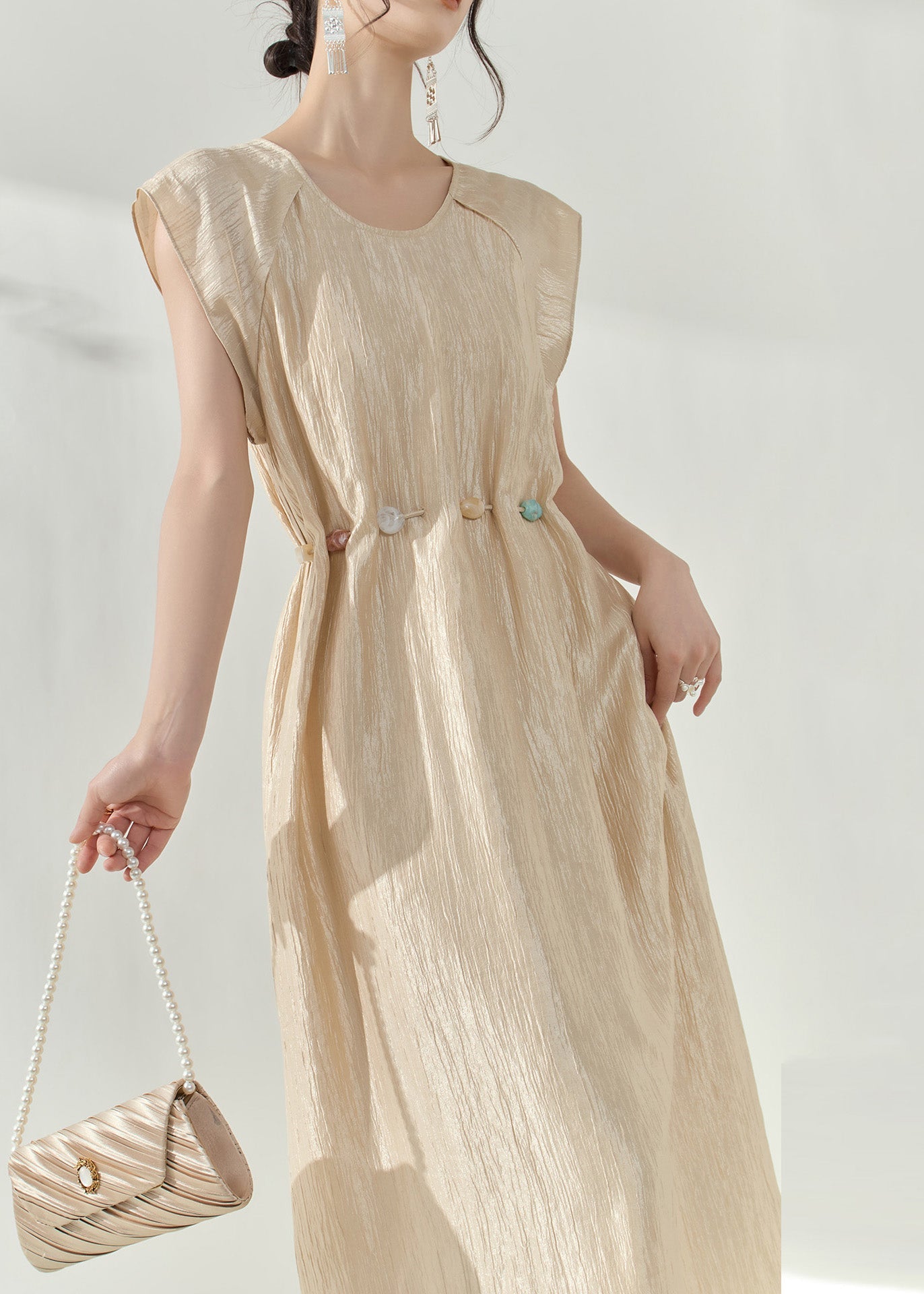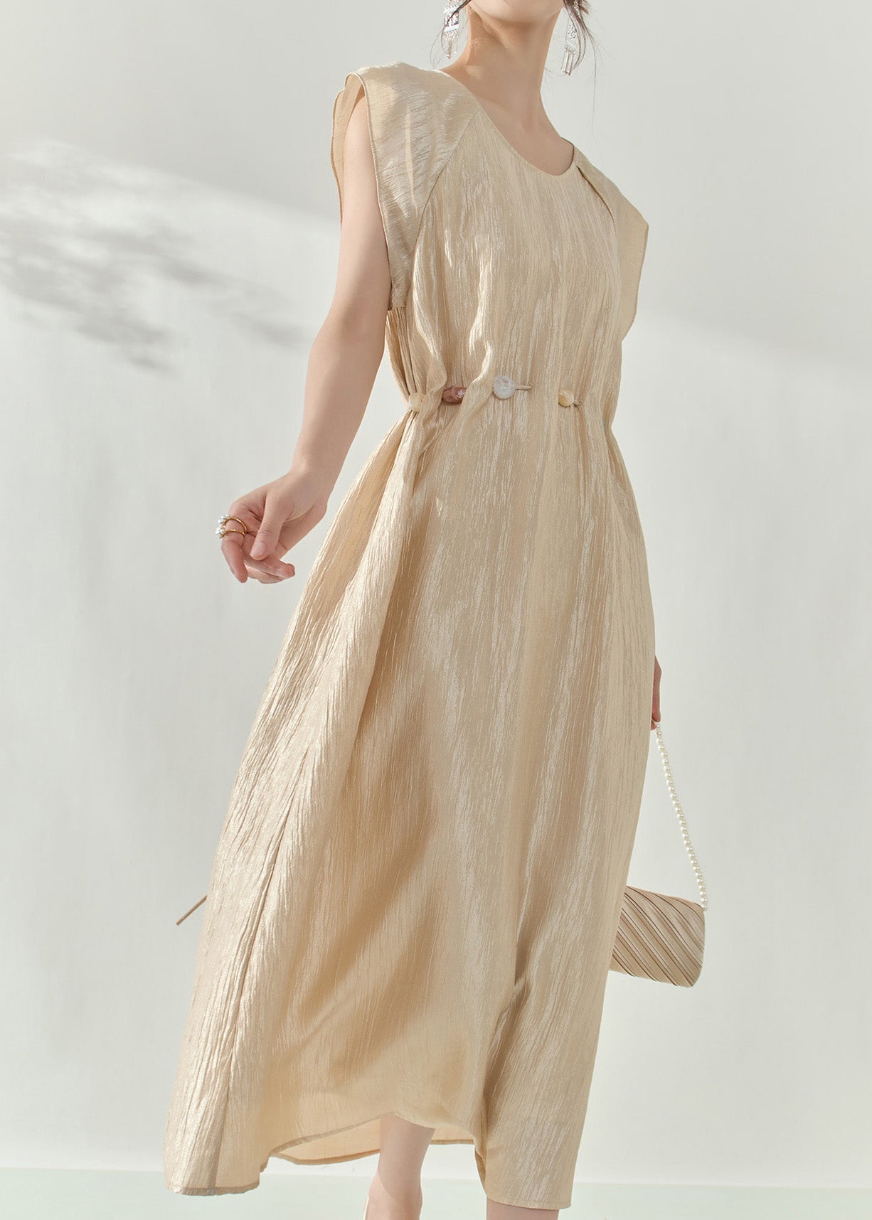 Natural Champagne Patchwork Slim Long Dress Summer