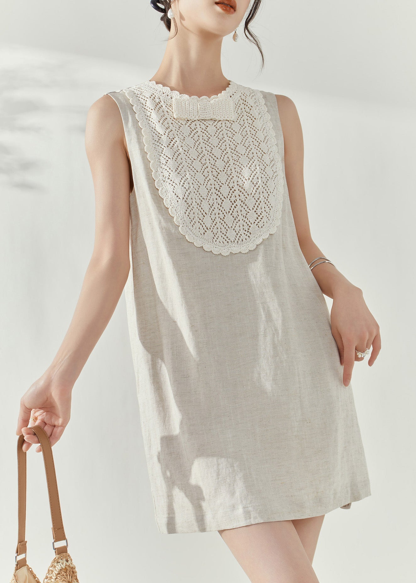 French White O-Neck Hollow Out Party Mid Dress Summer