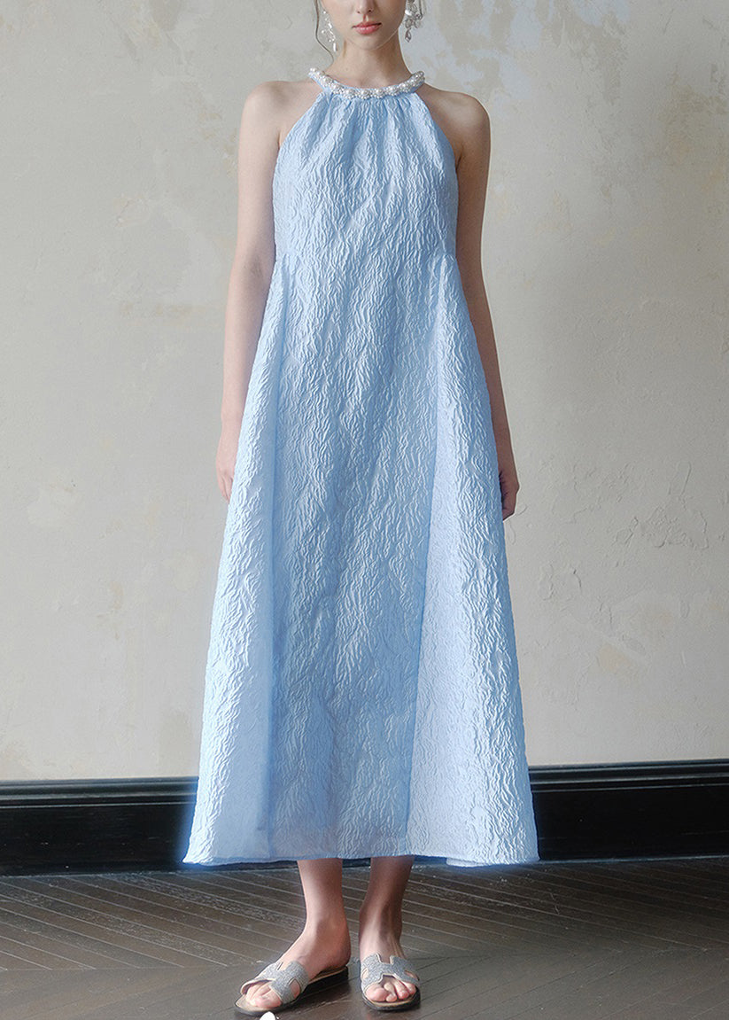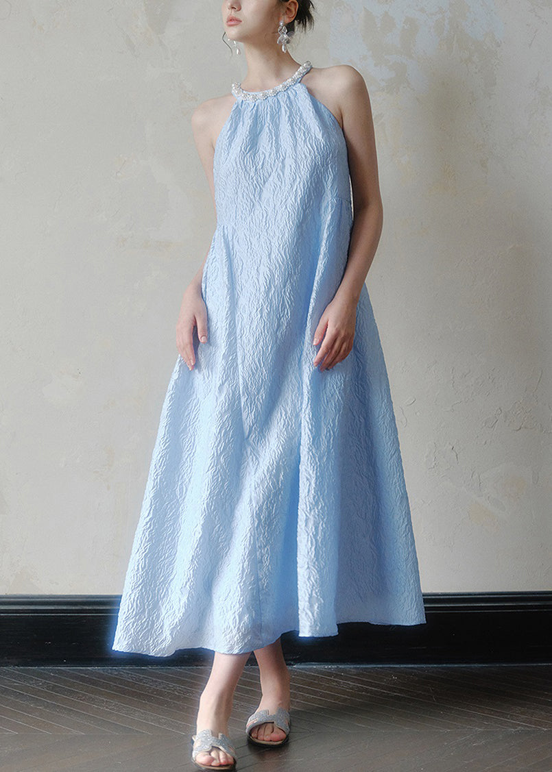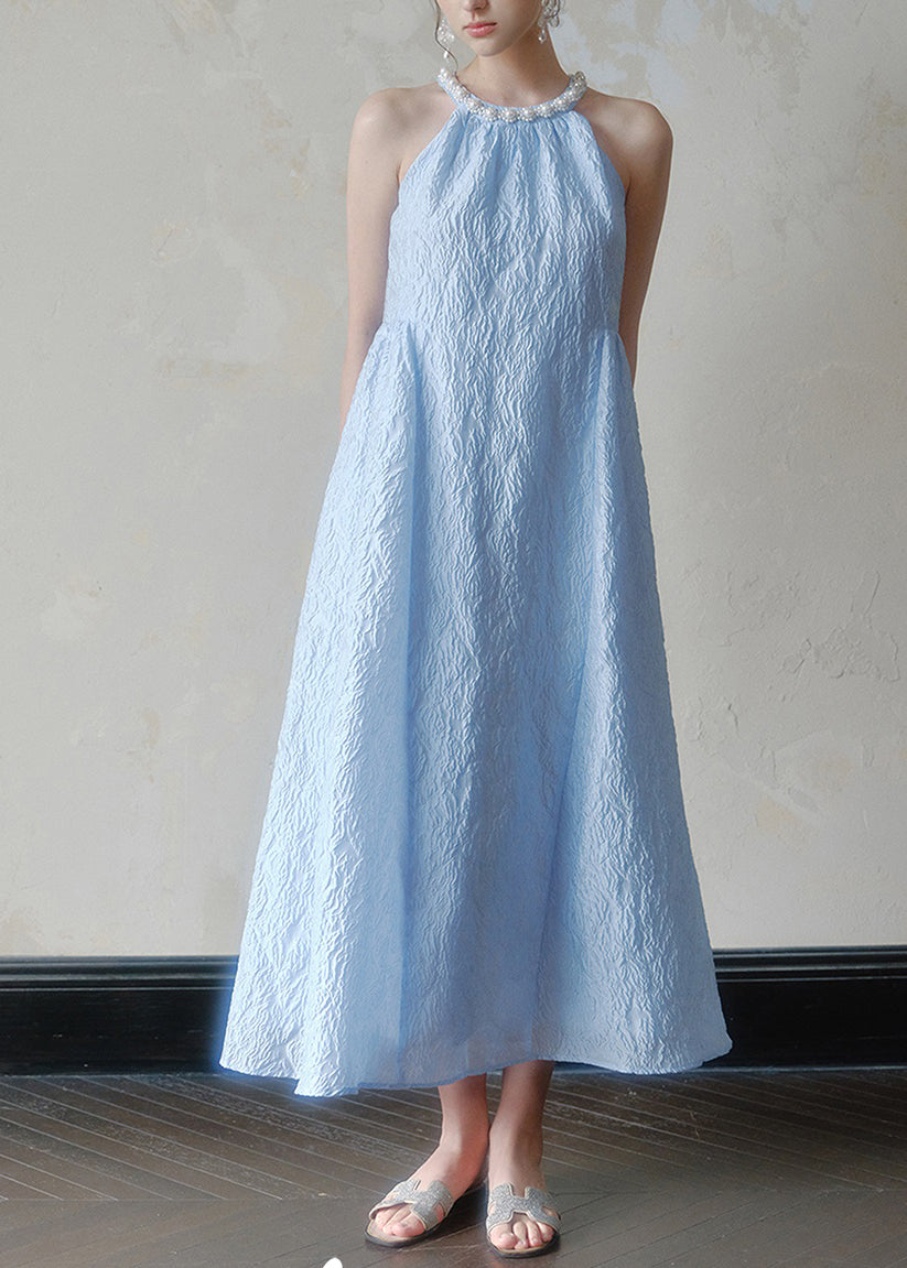 Jacquard Blue Halter Beading Maxi Dress Summer