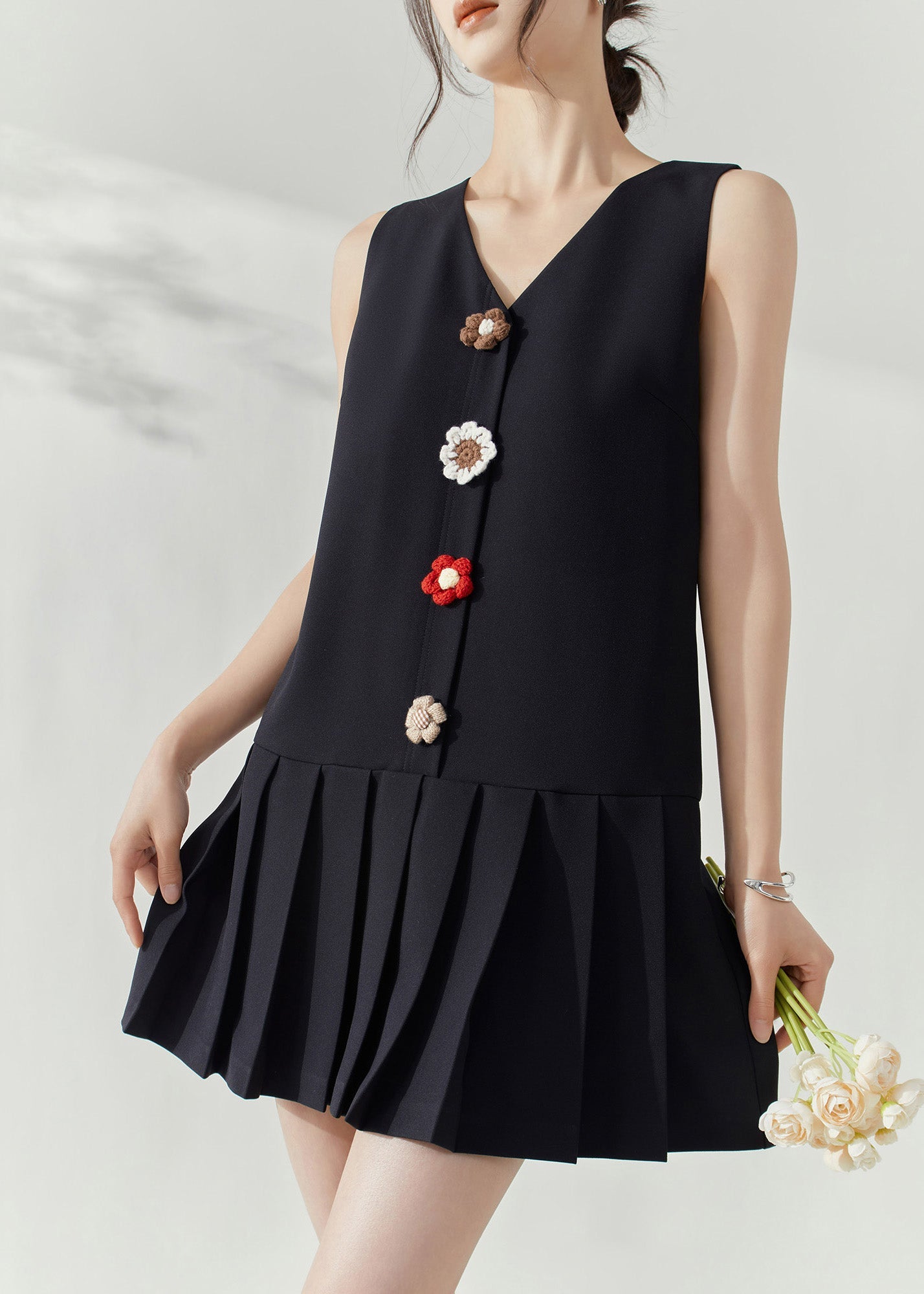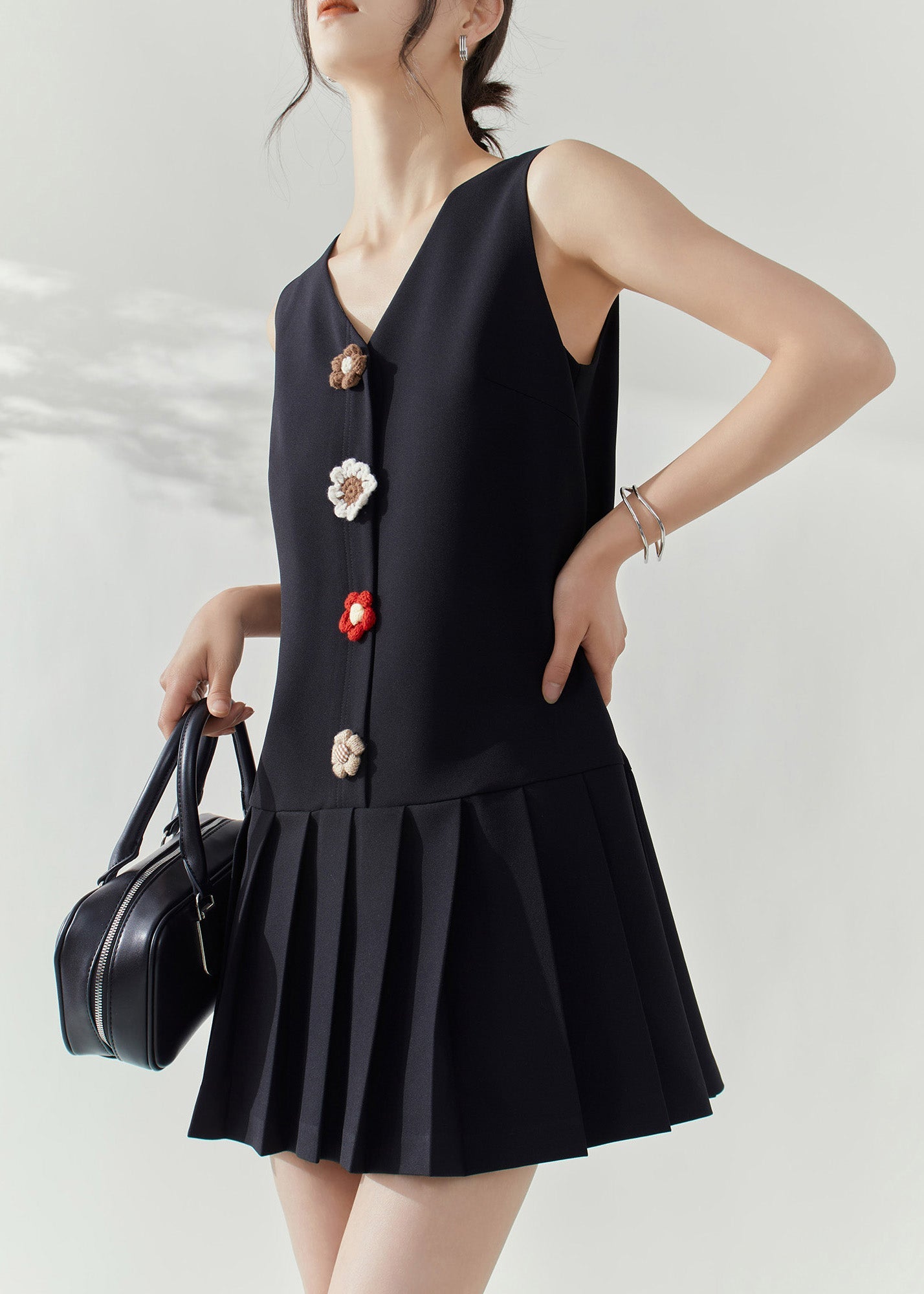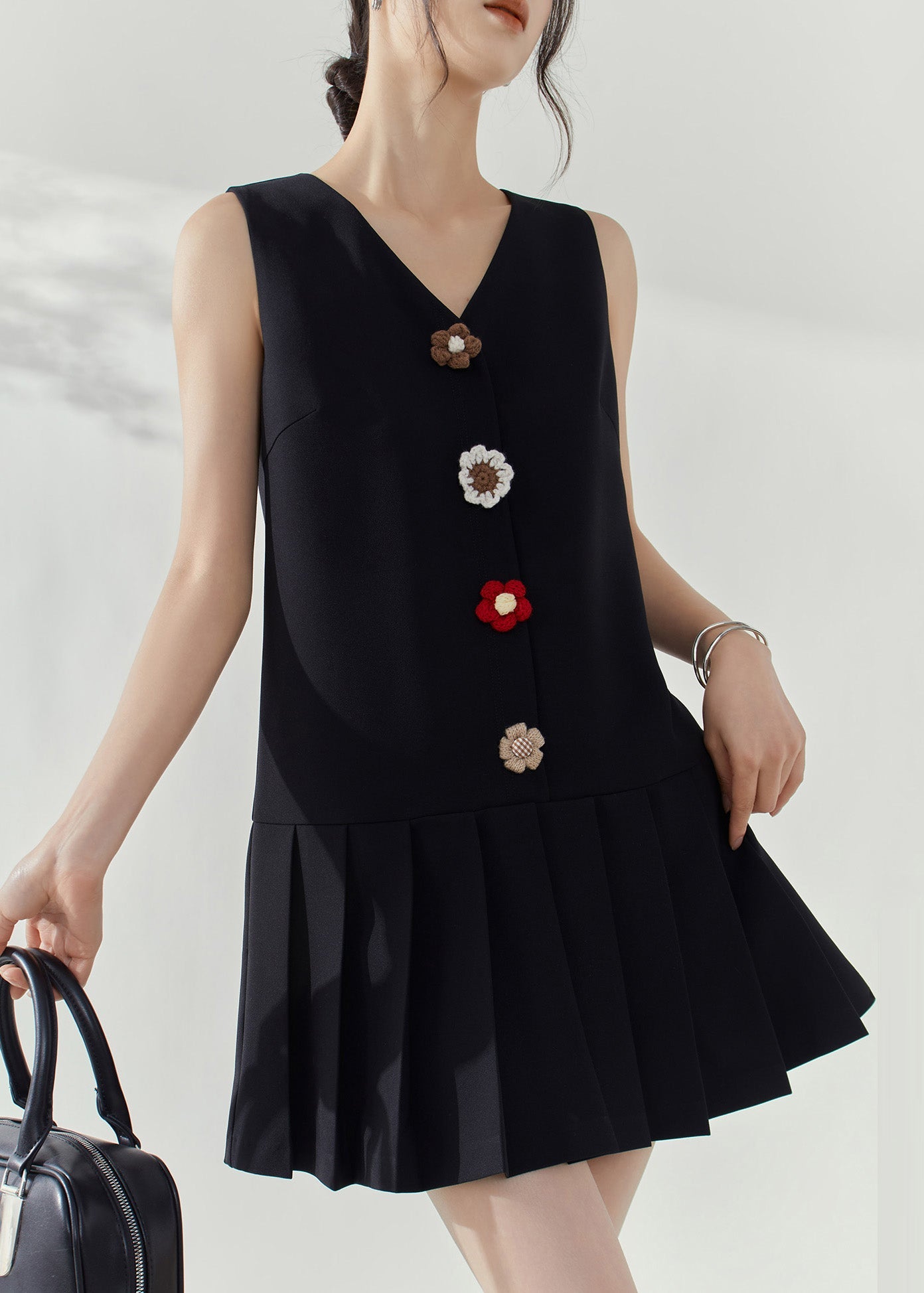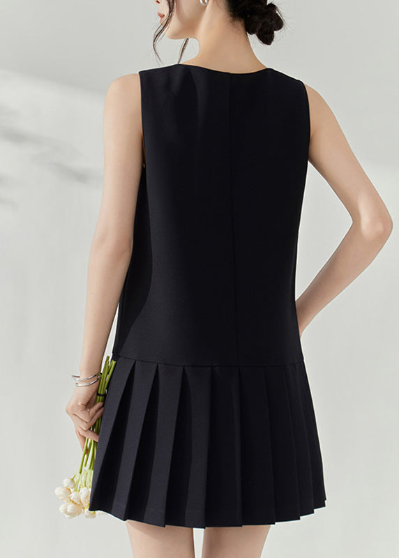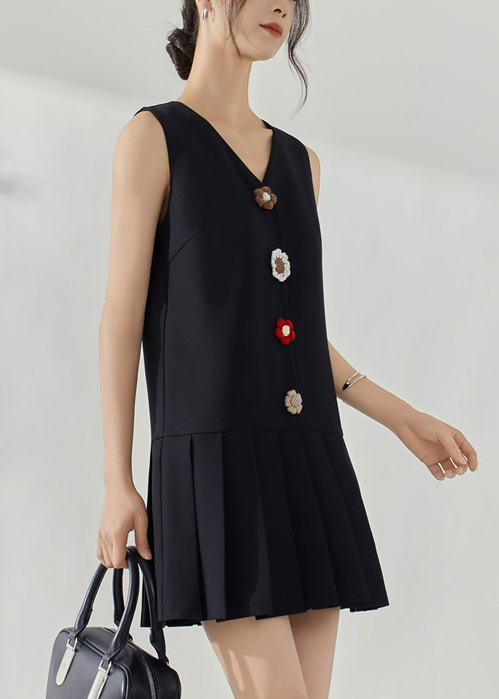 Modern Black V Neck Patchwork Mid Dresses Sleeveless