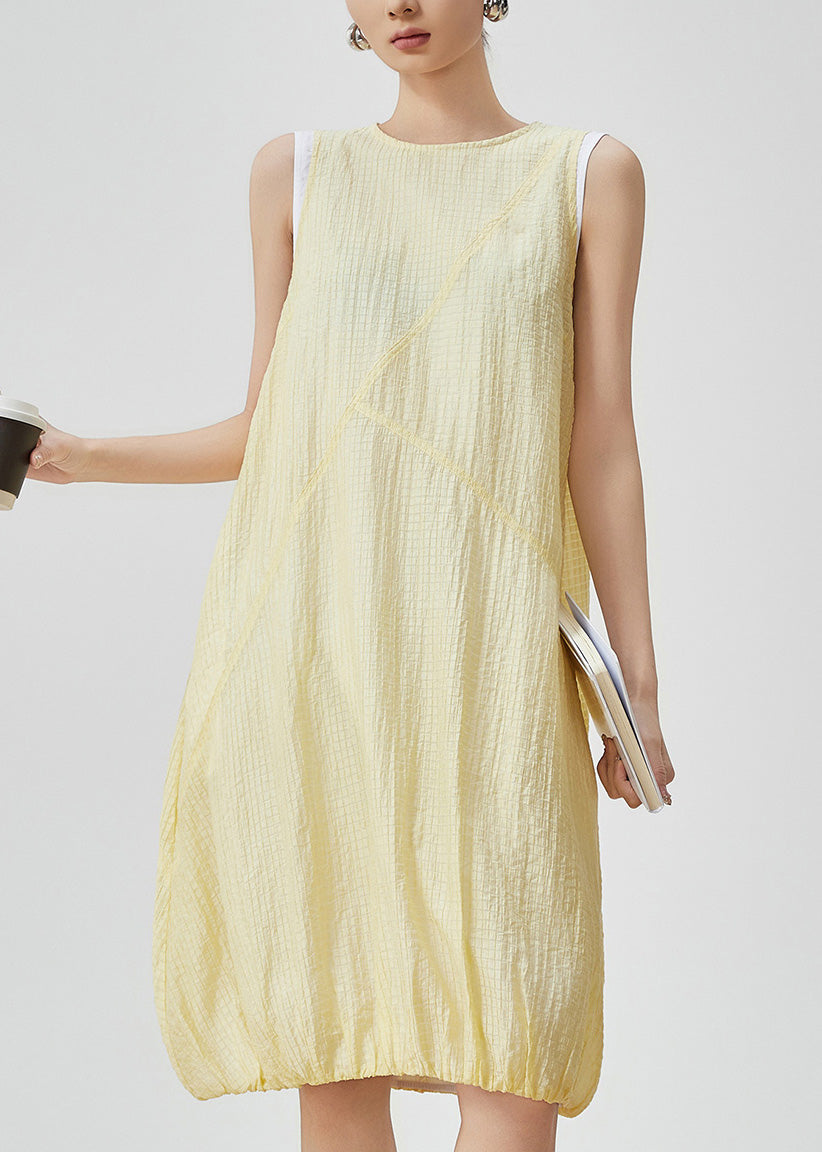 Original Design Yellow Patchwork Mid Dress Summer