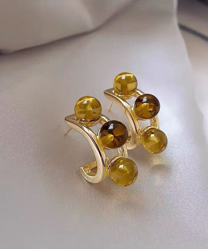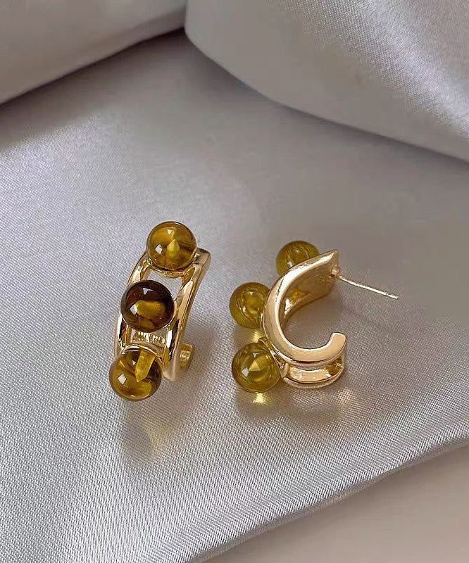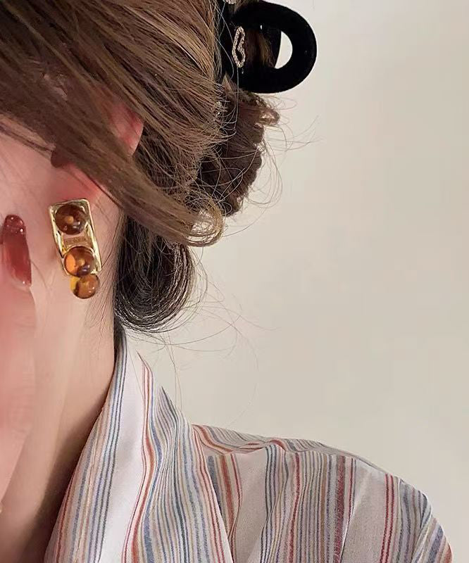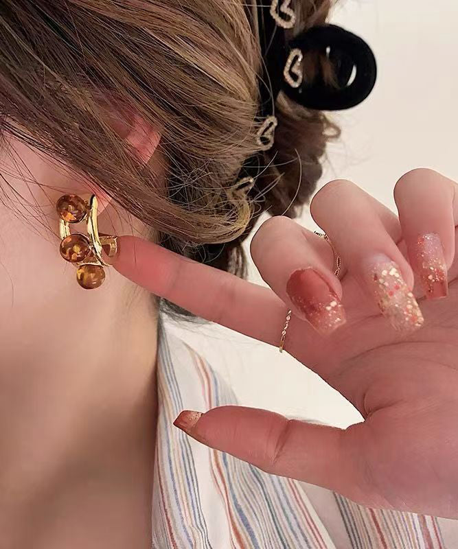 Vogue Gold Copper Alloy Graphic Pearl Stud Earrings