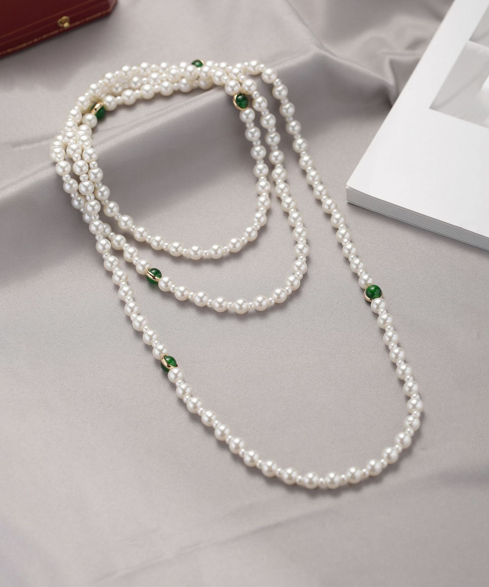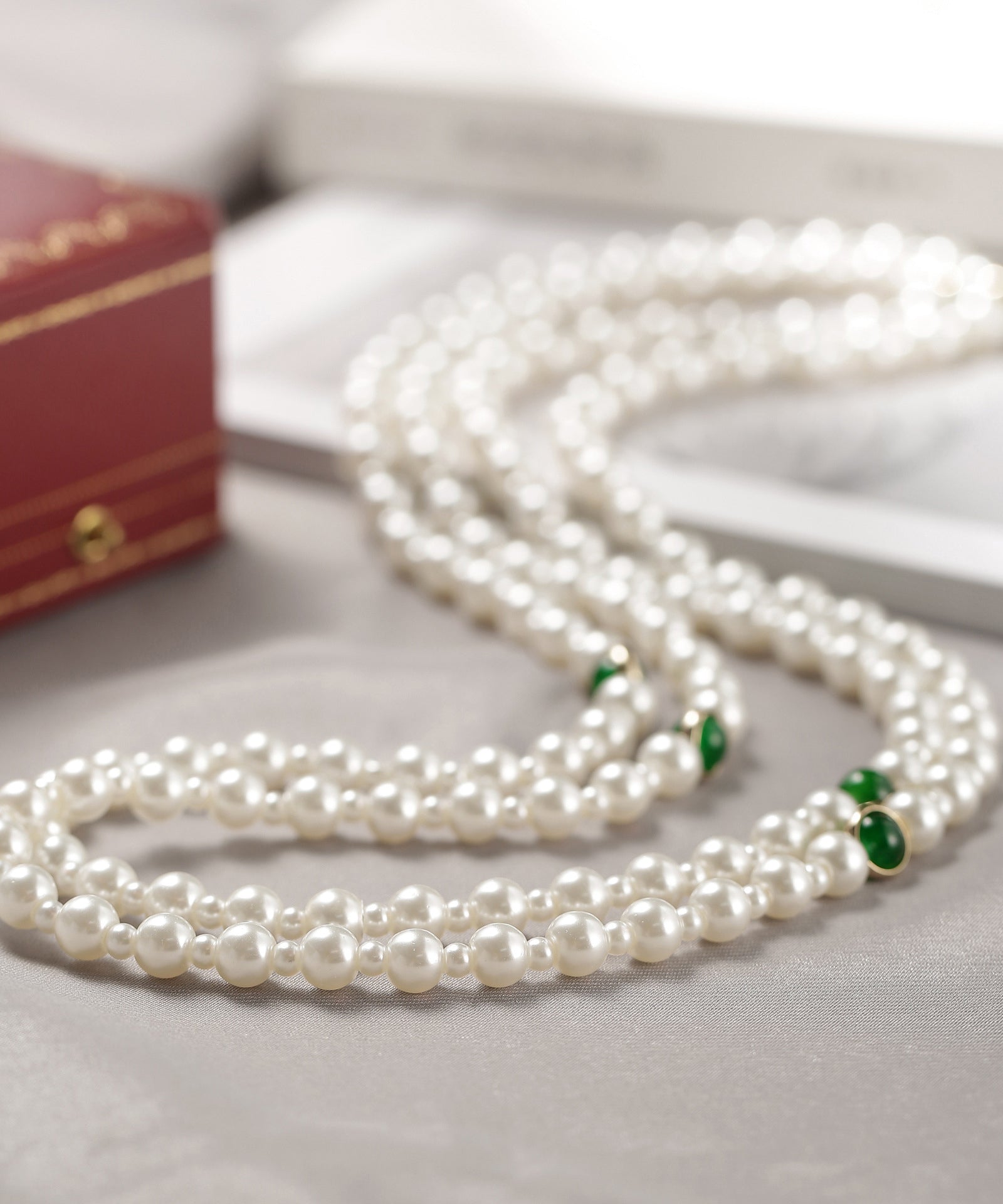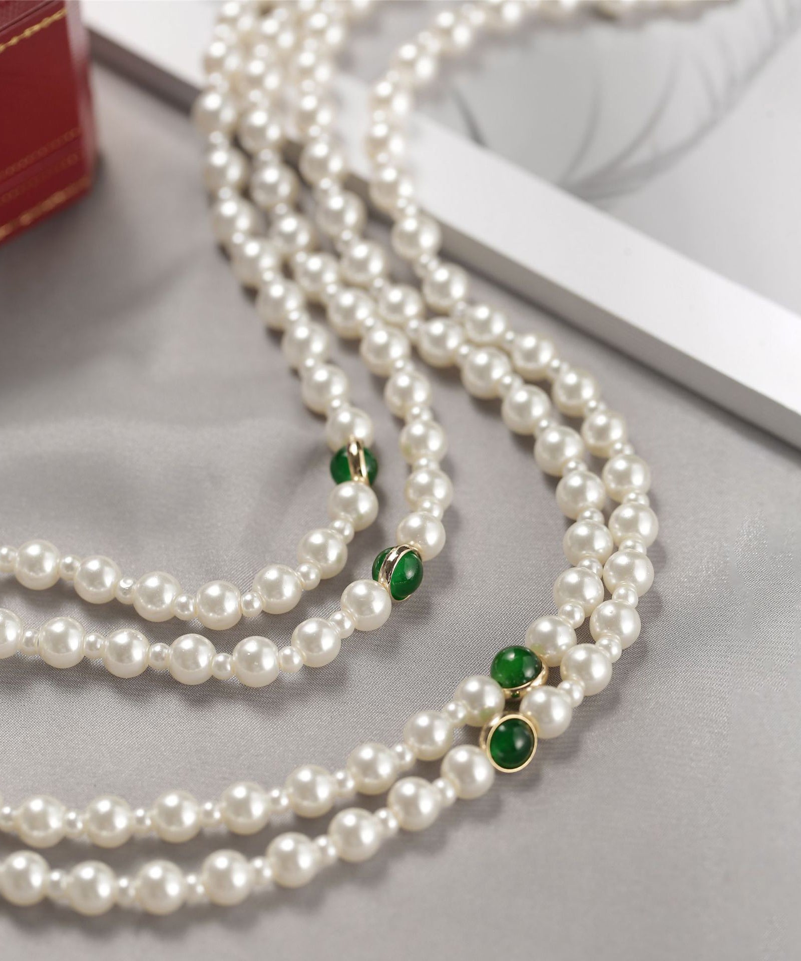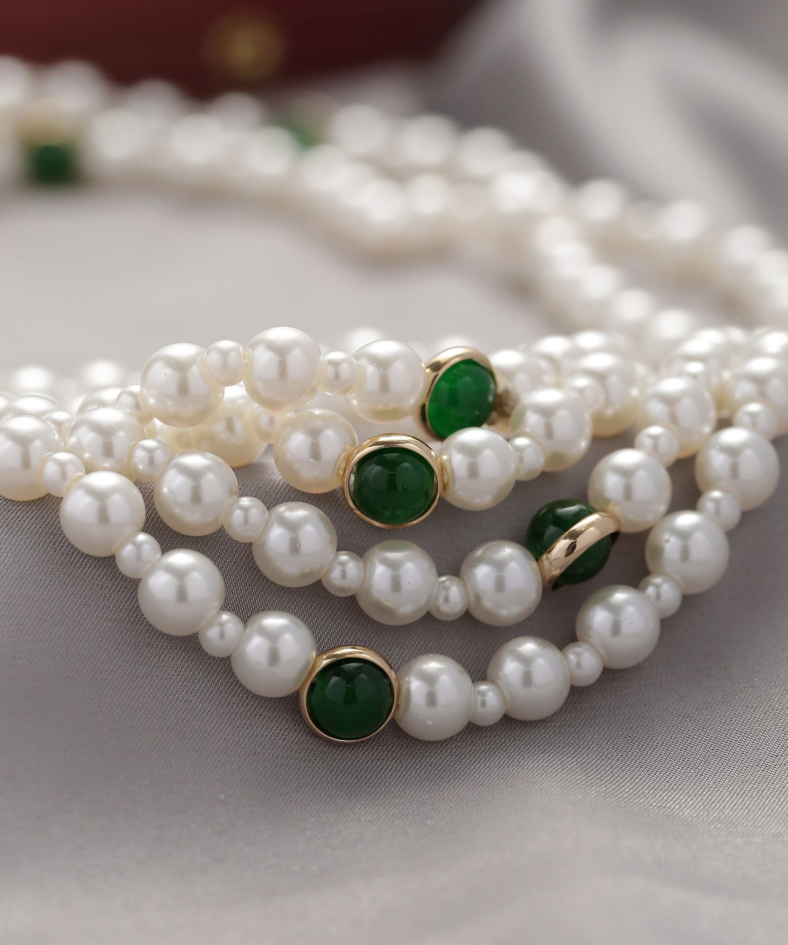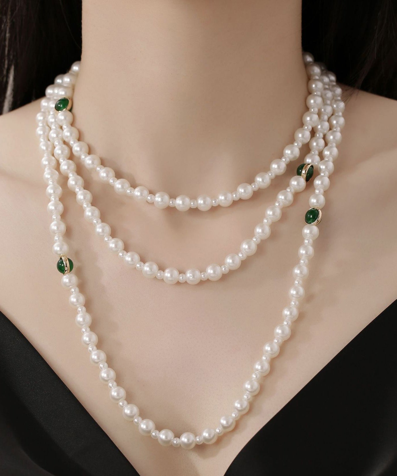 Classy White Alloy Agate Pearl Beading Gratuated Bead Necklace