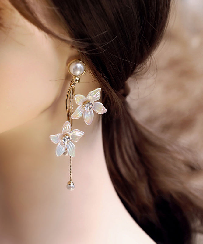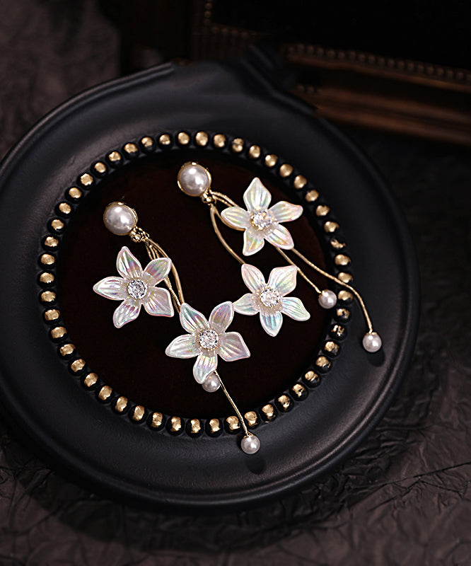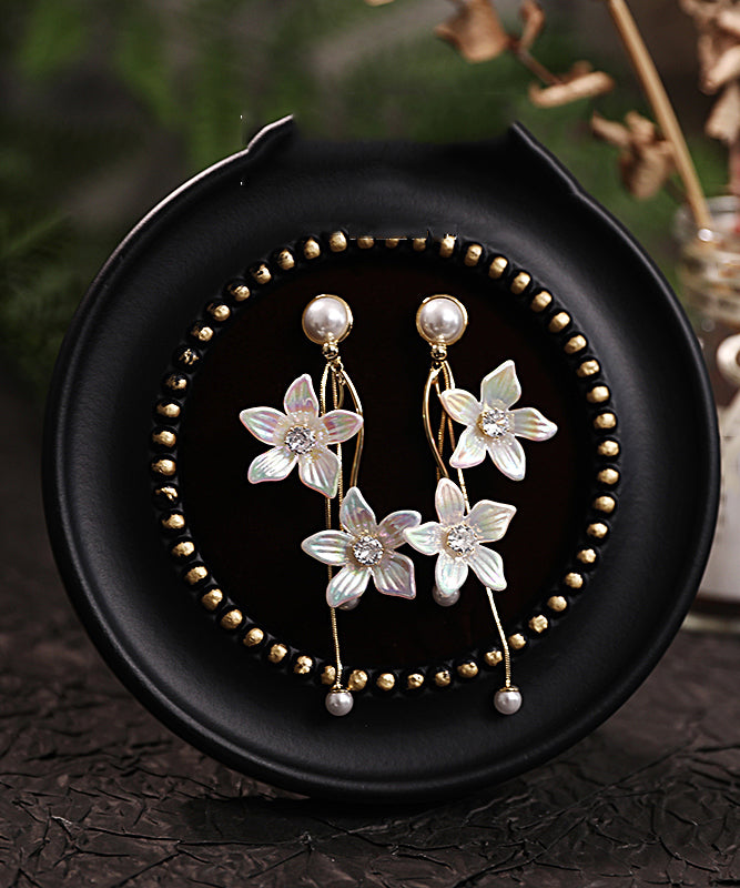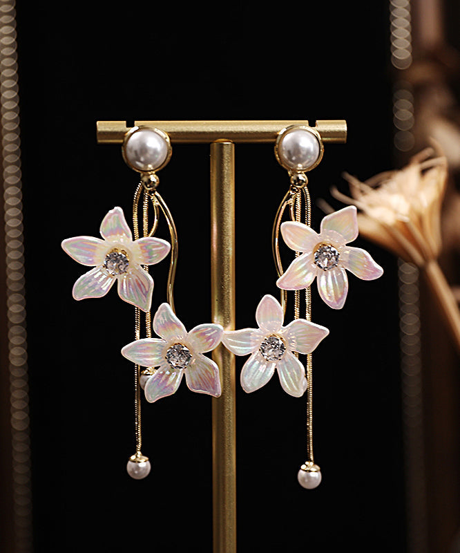 Fashion Gold Acrylic Alloy Zircon Pearl Floral Tassel Drop Earrings
