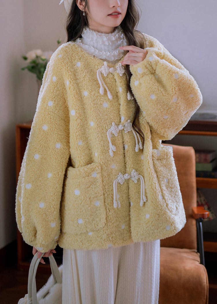 Loose Yellow Chinese Button Pockets Teddy Faux Fur Coats Winter