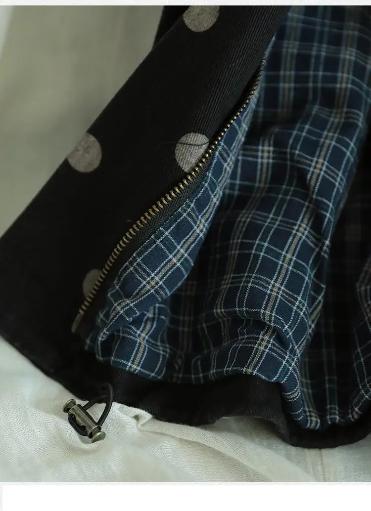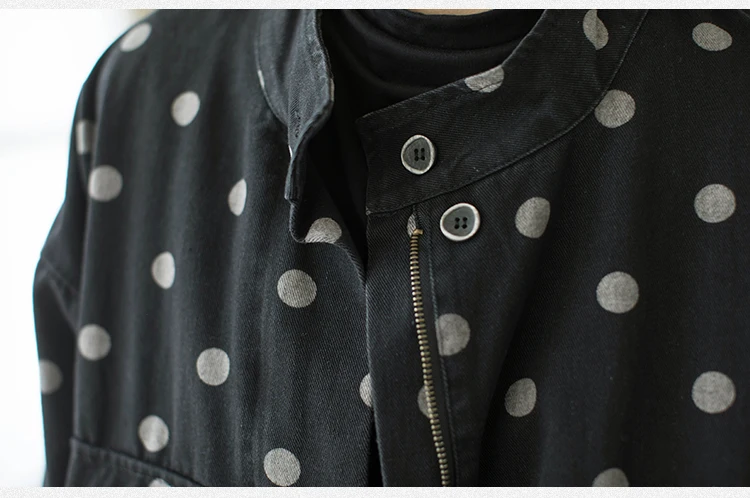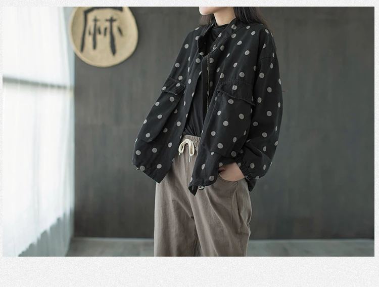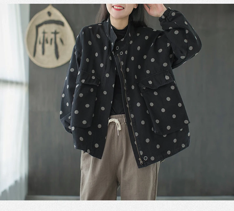 New All-match Retro Polka Dot Zipper Long Sleeve Coats Loose Coat