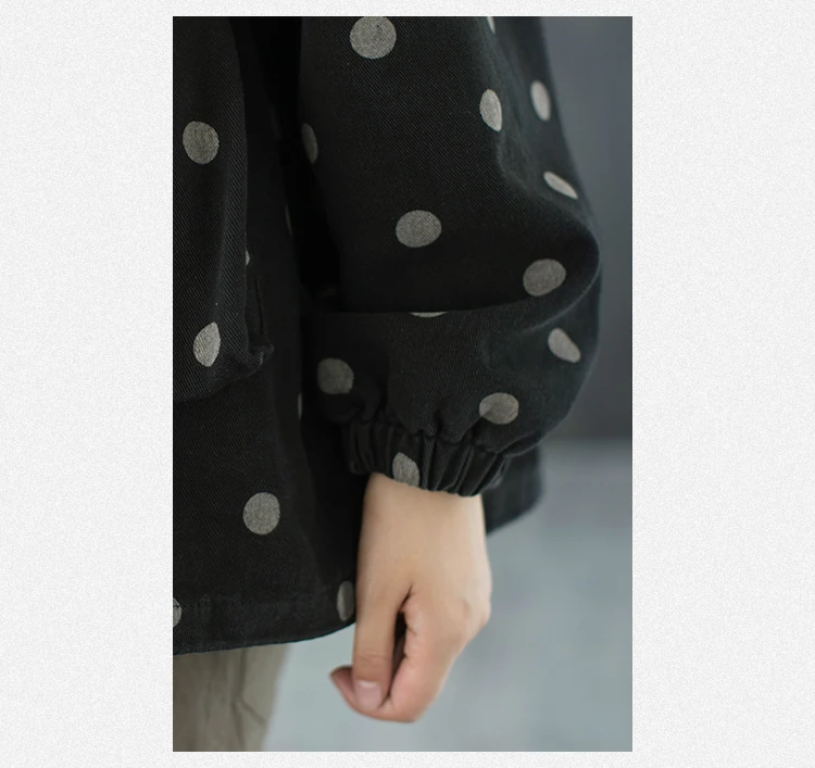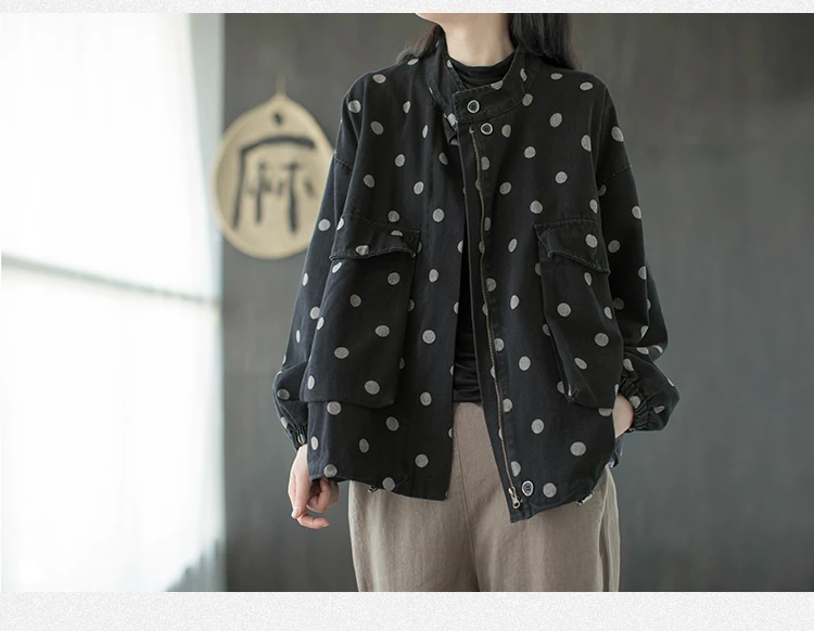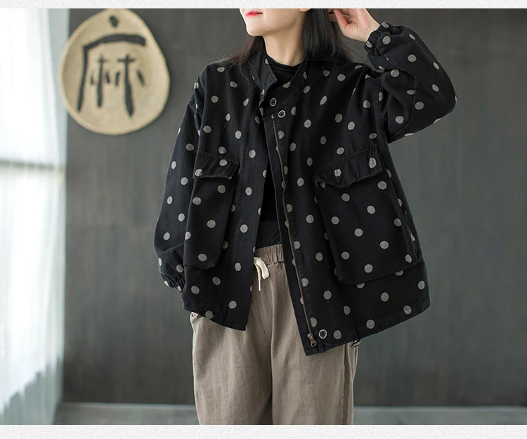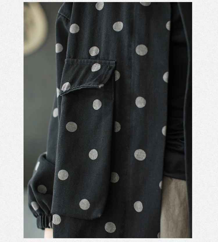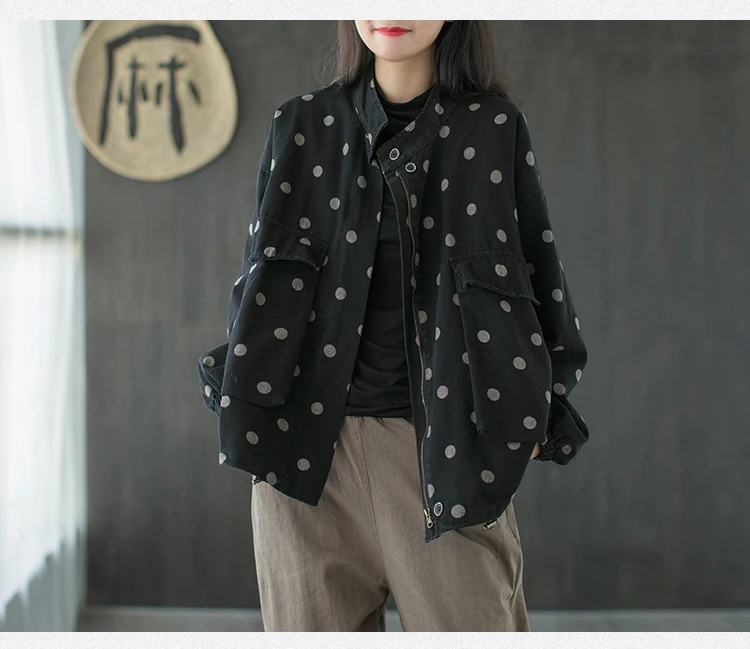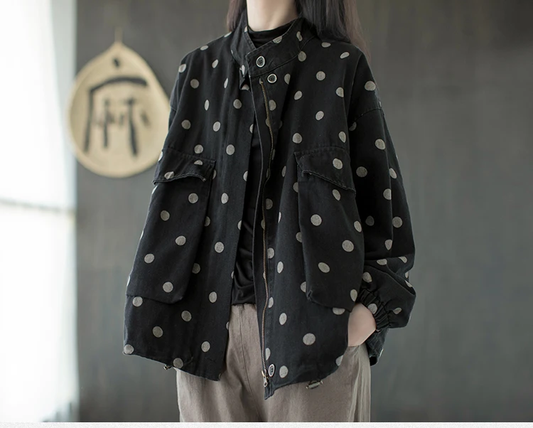 New All-match Retro Polka Dot Zipper Long Sleeve Coats Loose  Coat - Omychic