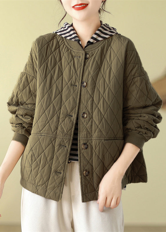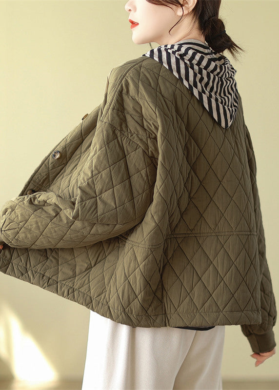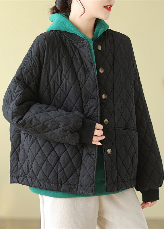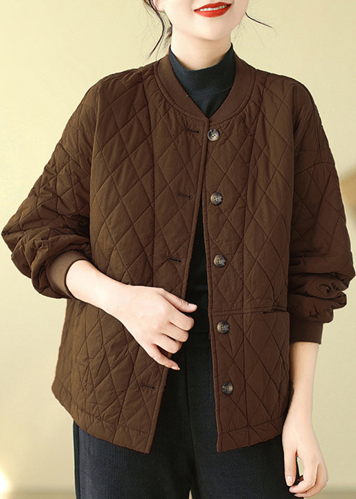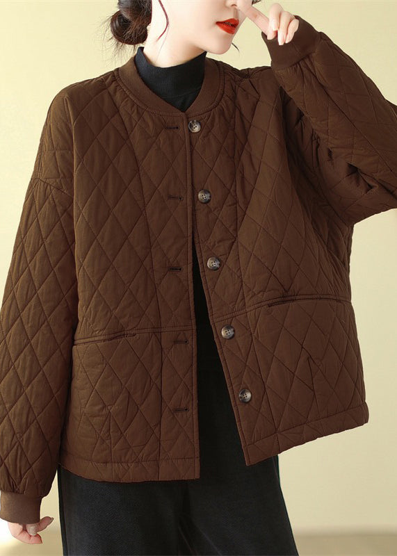 Plus Size Coffee Pockets Button Patchwork Fine Cotton Filled Jacket Winter