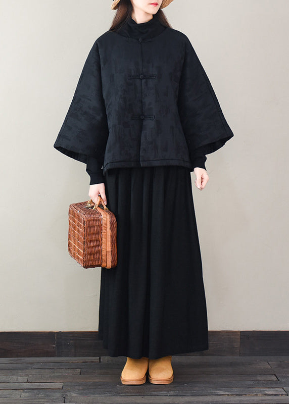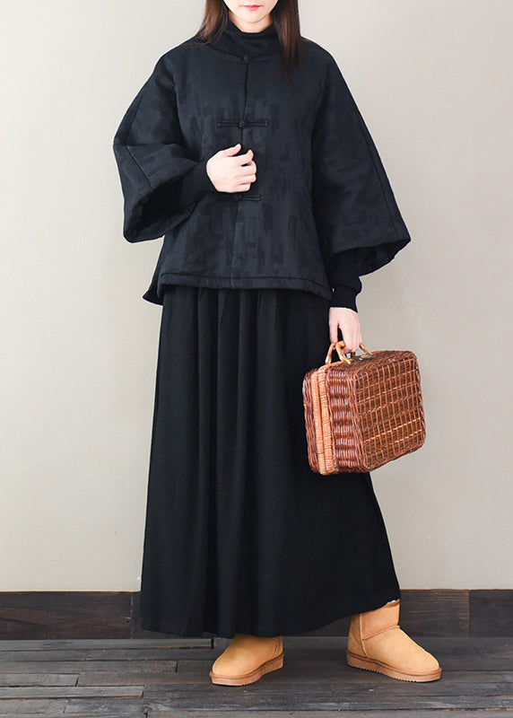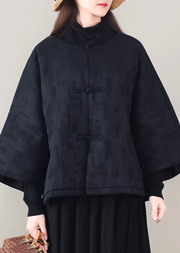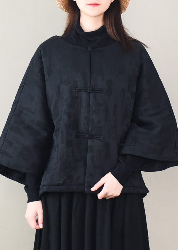 Vintage Black Stand Collar Chinese Button Fine Cotton Filled Coat Winter