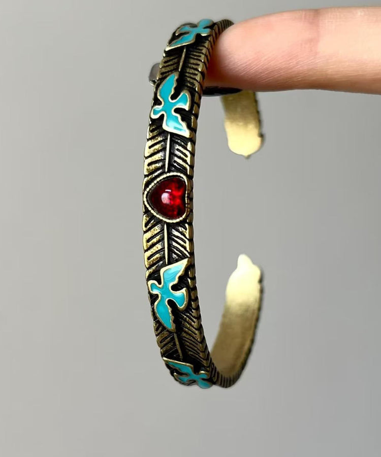 Chinese Style Sterling Silver Gem Stone Flying Bird Cuff