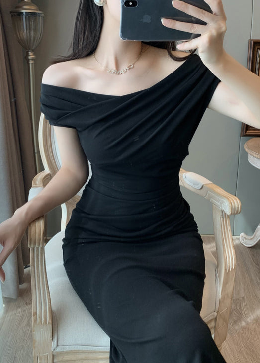 Chic Black Cold Shoulder Wraped Party Dresses Summer