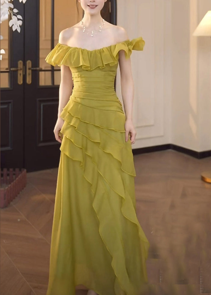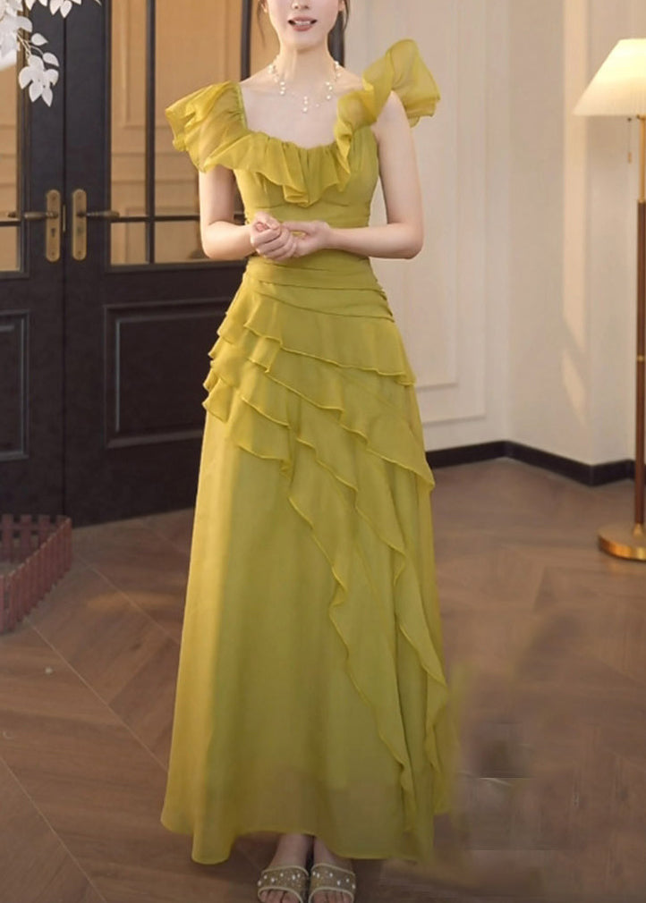 Chic Green Square Collar Ruffled Patchwork Chiffon Dress Summer