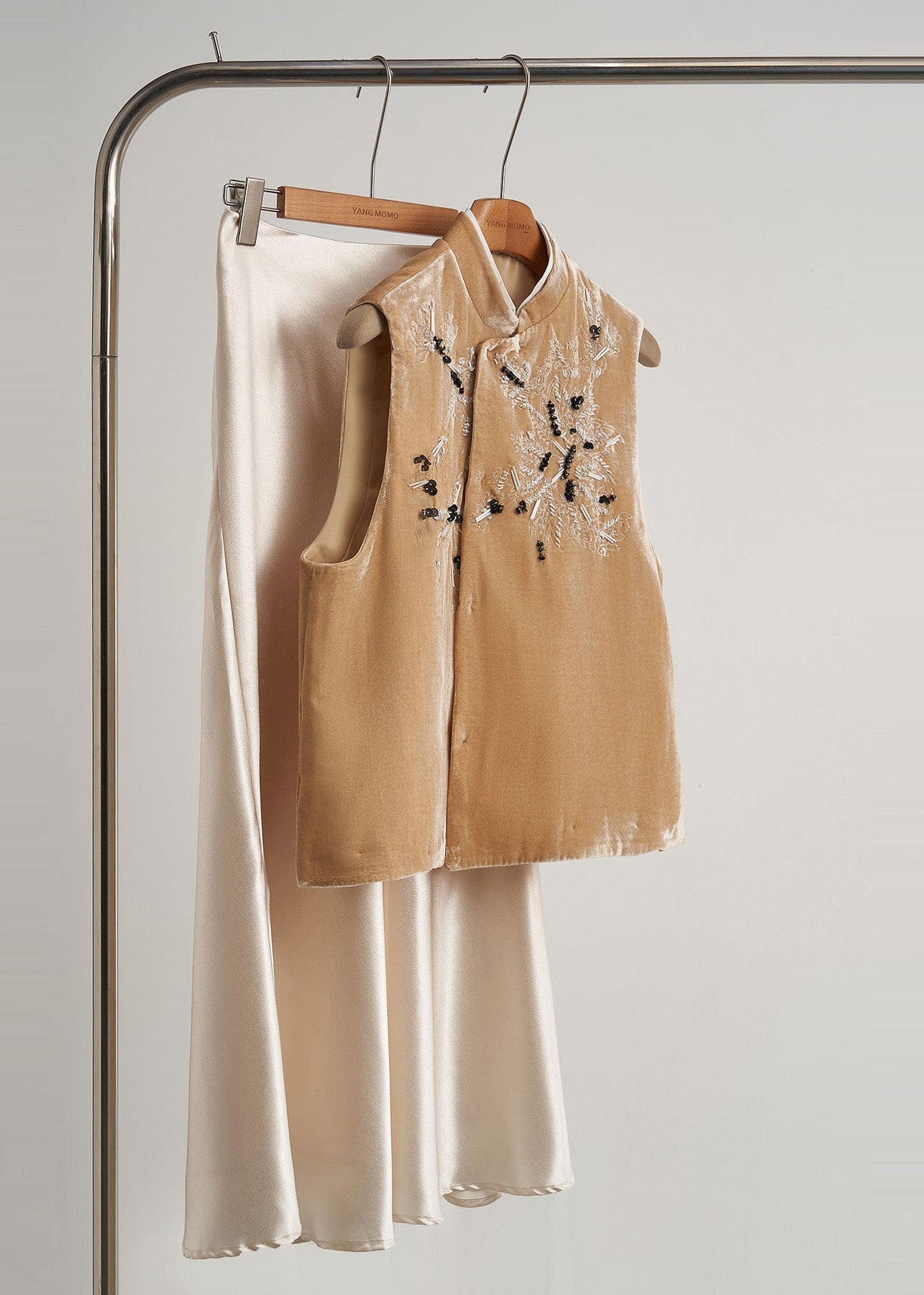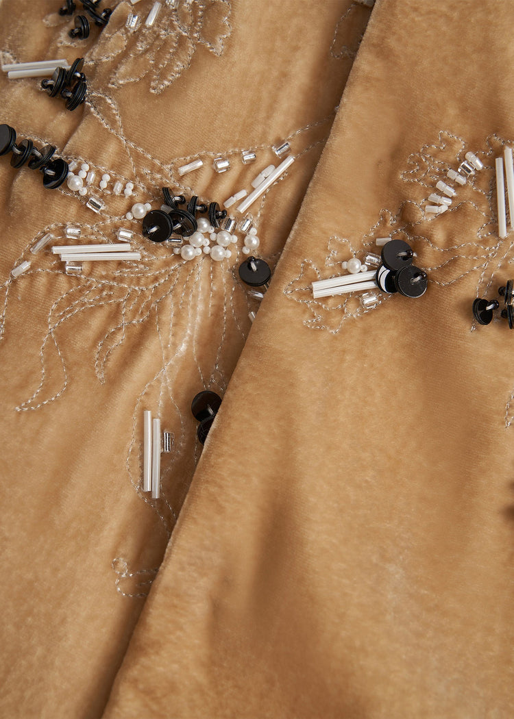 Bohemian Yellow Embroidered Nail Bead Silk Velour Vests Fall