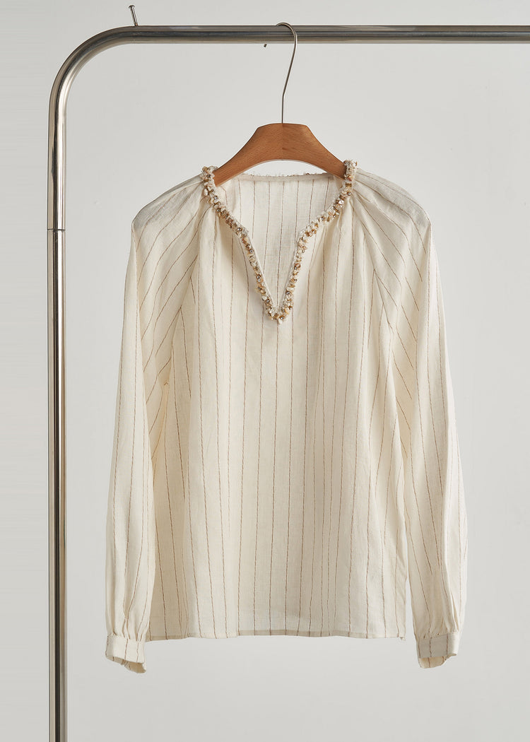 Boho Beige V Neck Striped Two Piece Set Outfits Fall