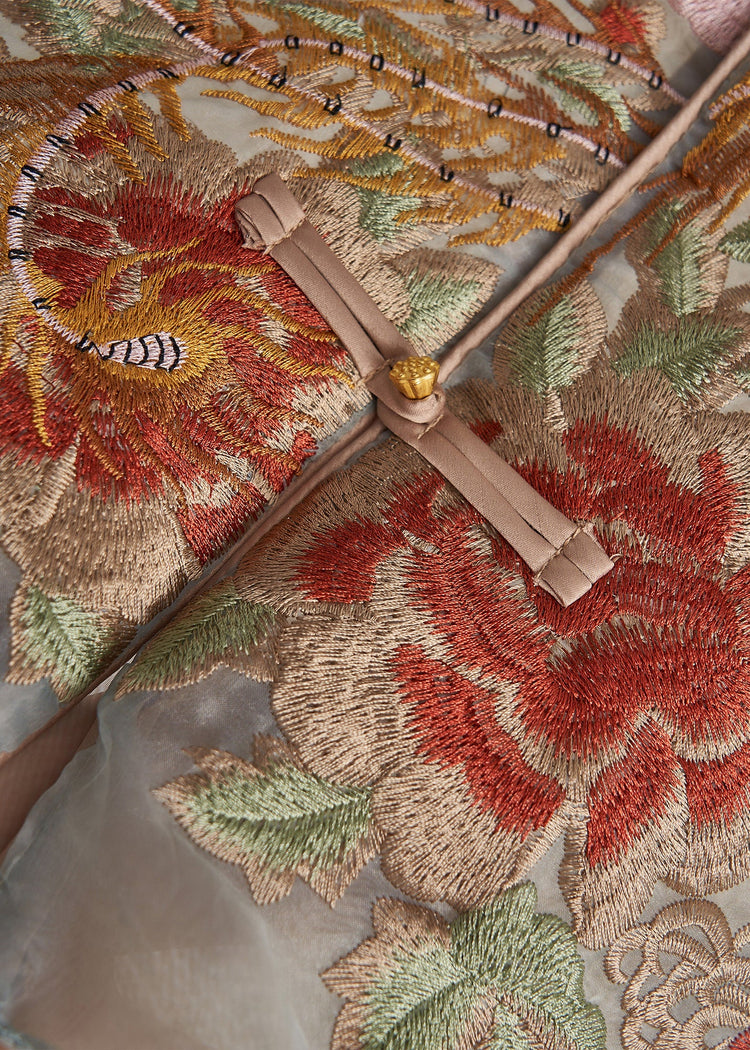 Fine Apricot Embroidered Chinese Button Silk Top Sleeveless