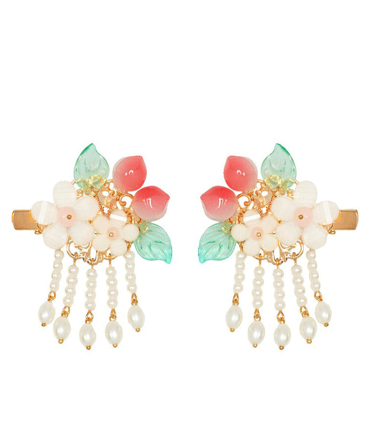 Fine White Alloy Pearl Resin Peach Tassel A Pair Hairpin