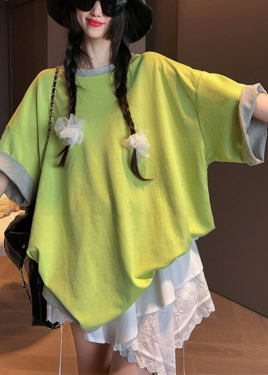 Chic Black Oversized Patchwork Cotton Fake Two Piece Tops Fall