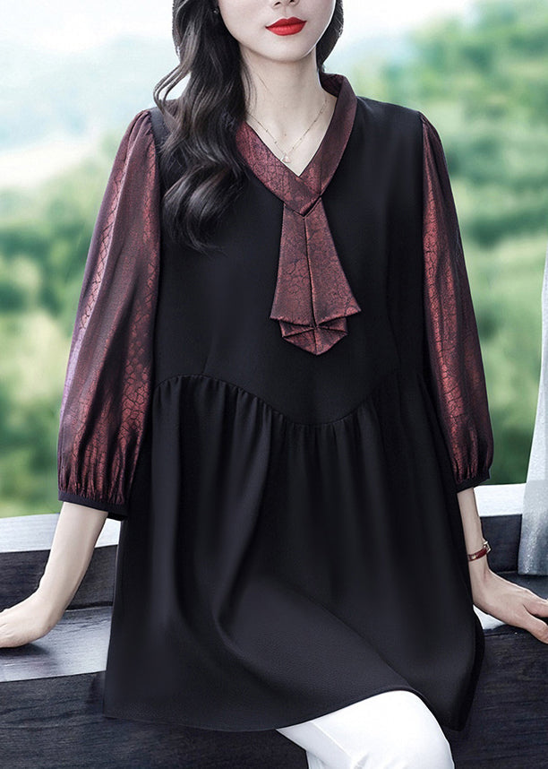 Fine Black Ruffled Patchwork Lace Shirts Fall