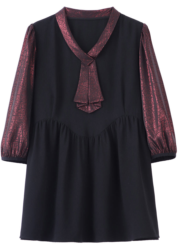 Vintage Dull Red Heart Neck Patchwork Fake Two Piece Shirt Bracelet Sleeve
