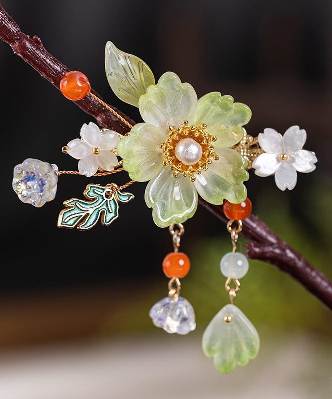 Chinese Style Green Alloy Pearl Butterfly Tassel Ribbon Hairpin