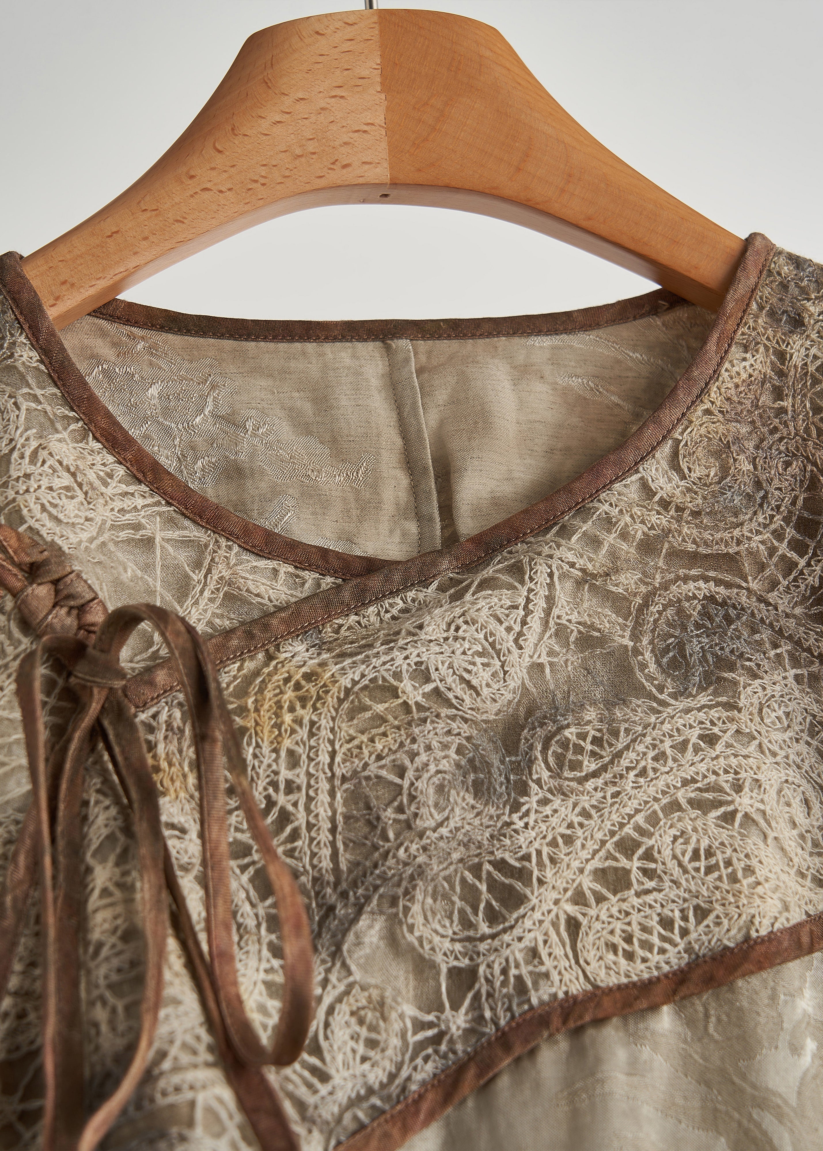Art Brown Print Patchwork Lace Oriental Tops Fall