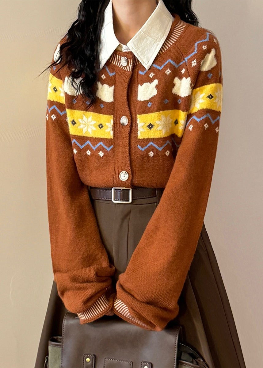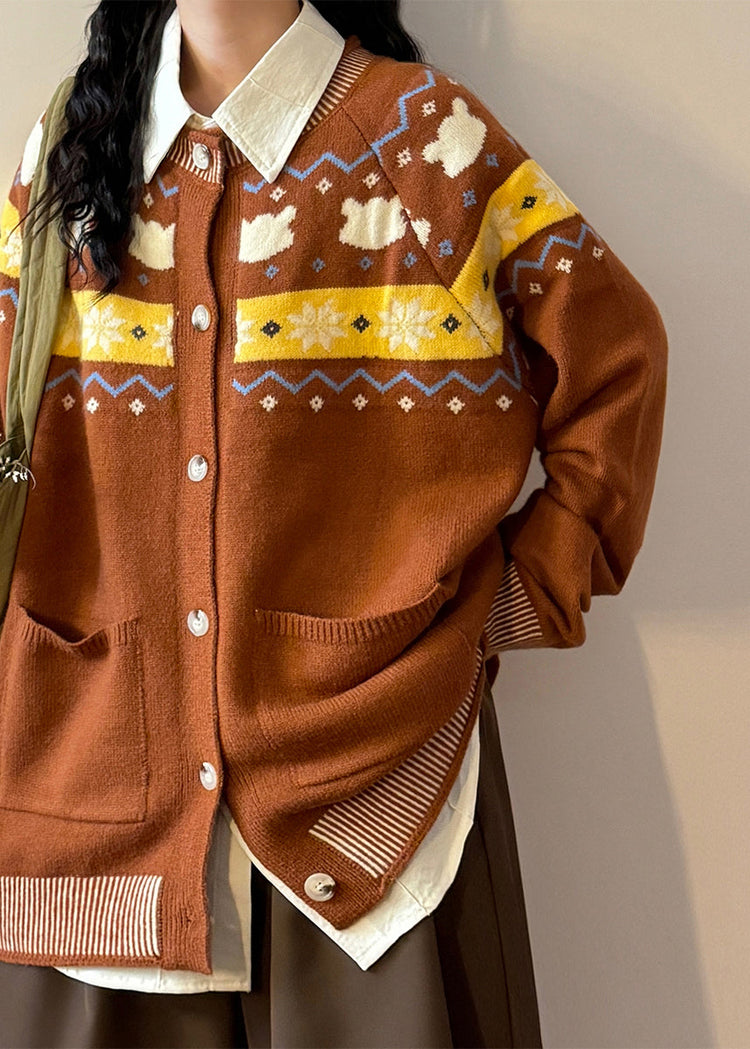Jacquard Navy Button Pockets Cozy Knit Coats Spring