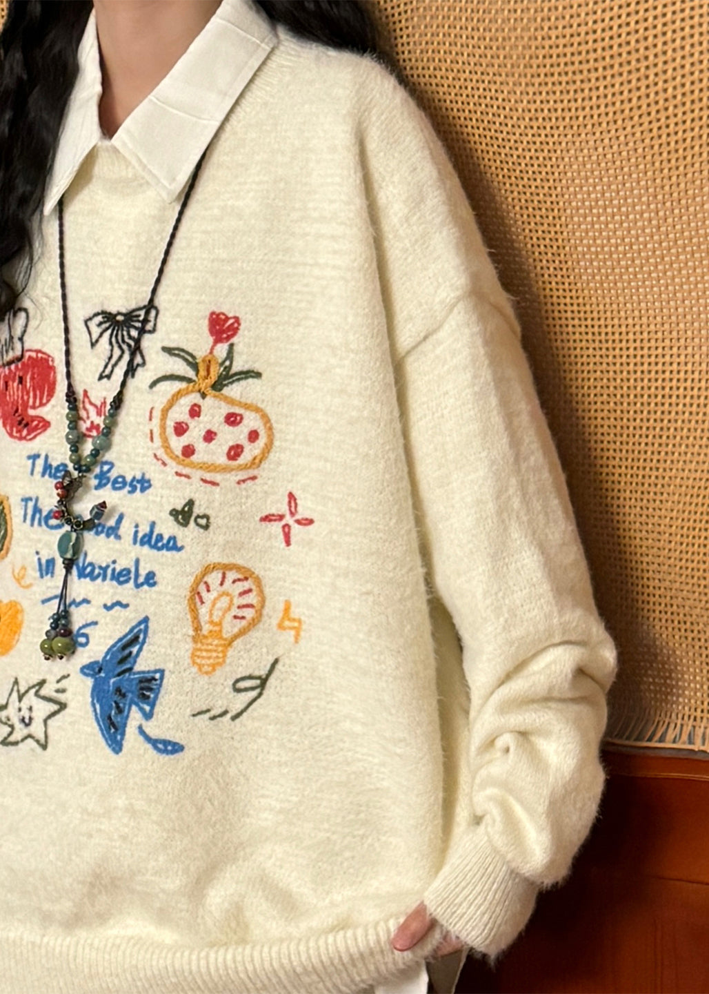 Art White Hole Print Mink Hair Knitted Sweaters Spring