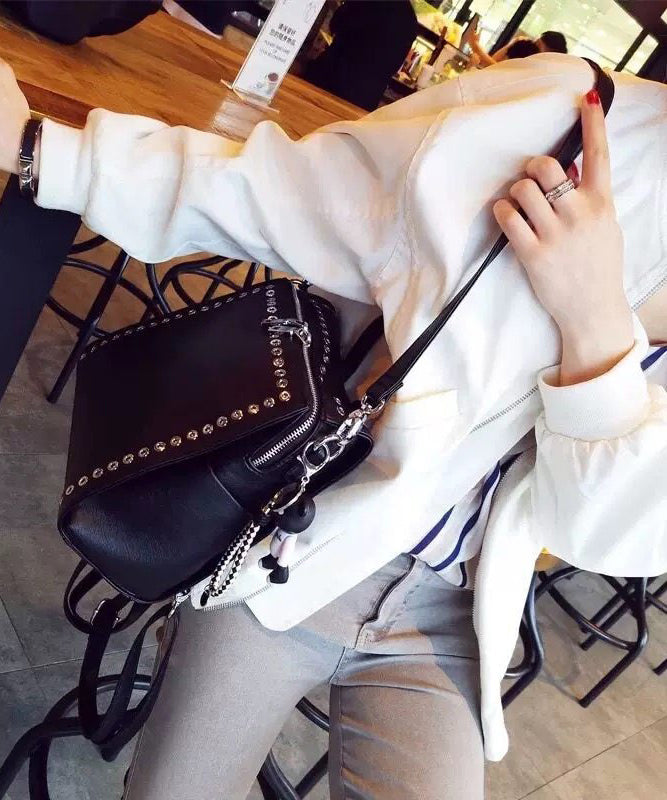 Beautiful Black Rivet Solid Durable Faux Leather Versatile Backpack Bag