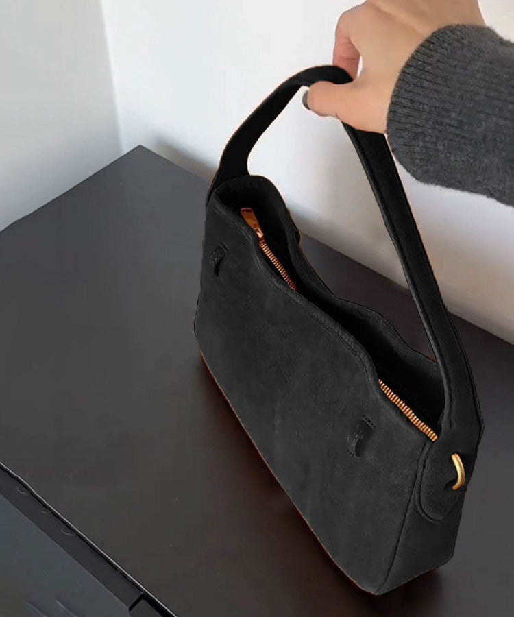 Chic Black Solid Durable Suede Shoulder Bag