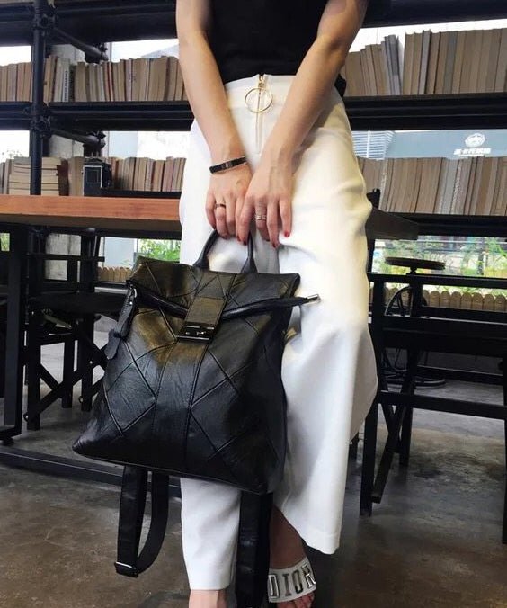 Style Black Plaid Large Capacity Faux Leather Versatile Backpack Bag