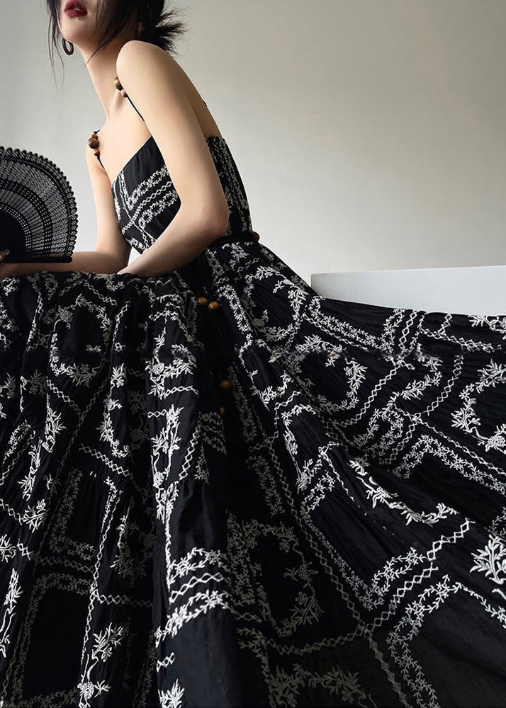 Novelty Black Print Tie Waist Cotton Spaghetti Strap Dress Sleeveless