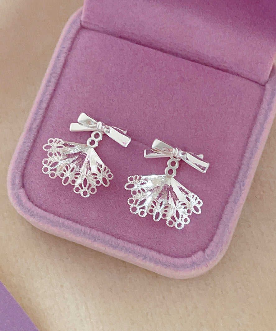 Classy White Sterling Silver Bow Lace Stud Earrings