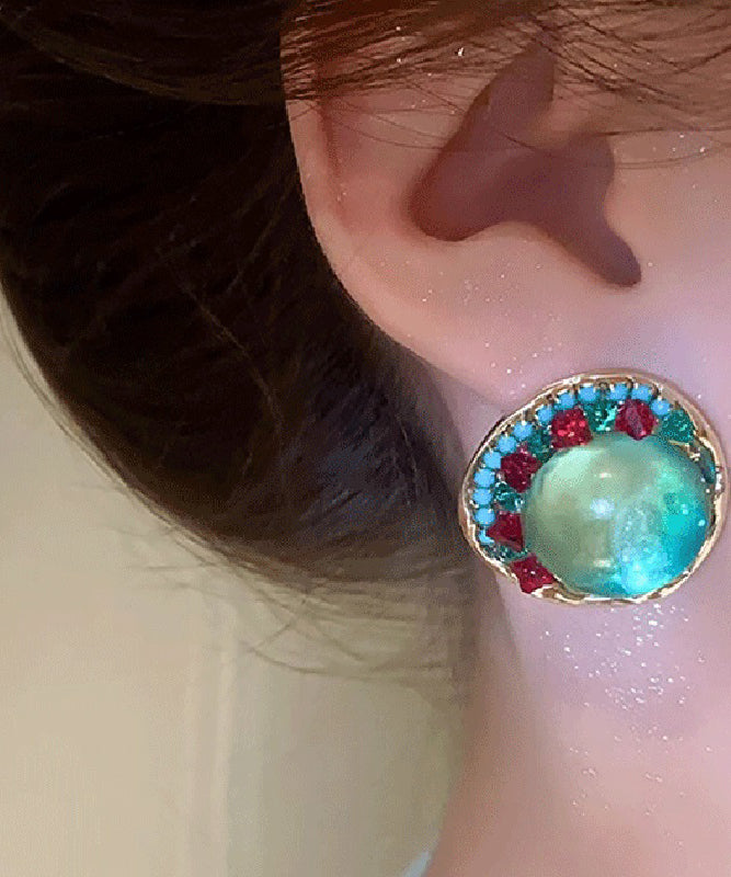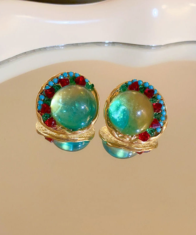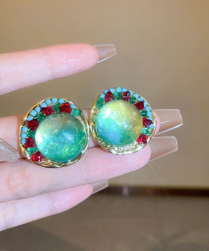 Oversize Green Alloy Colored Glaze Stud Earrings