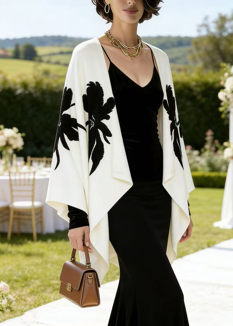 Elegant White Jacquard Knit Loose Cardigans Spring