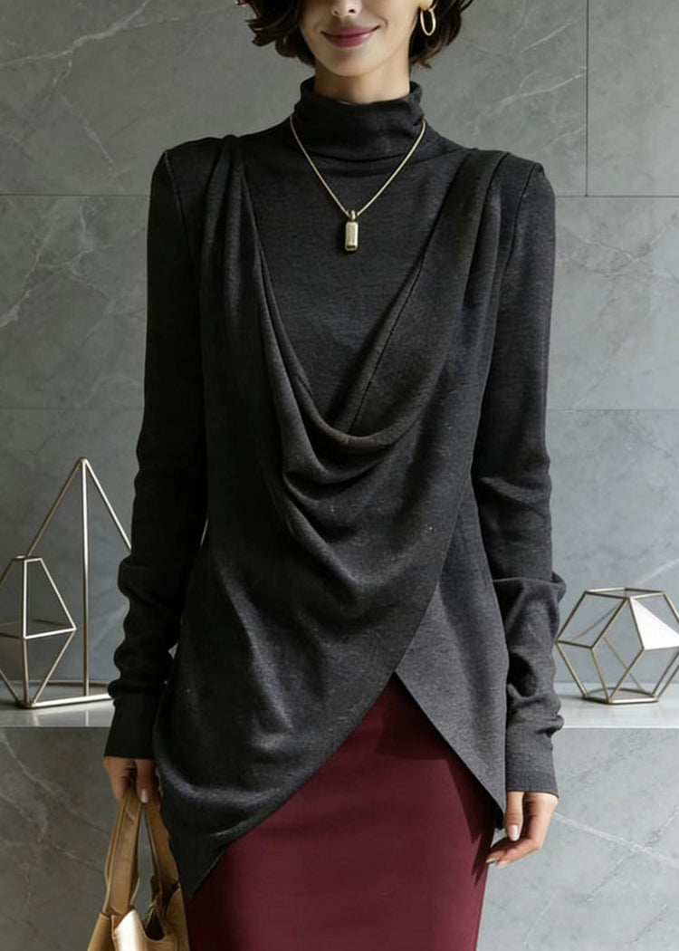Italian Grey Asymmetrical Design Cotton Top Spring