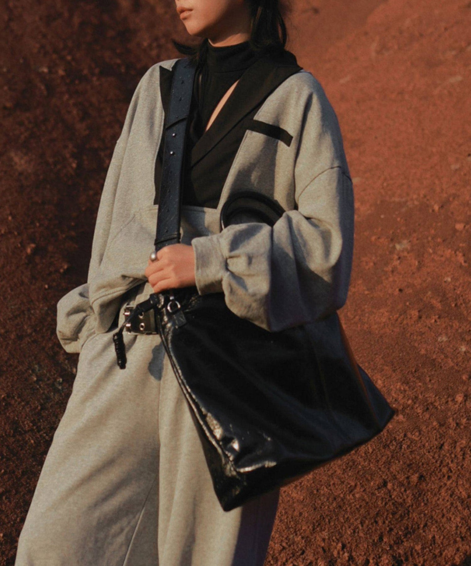 Boutique Black Large Capacity Calf Leather Tote Handbag
