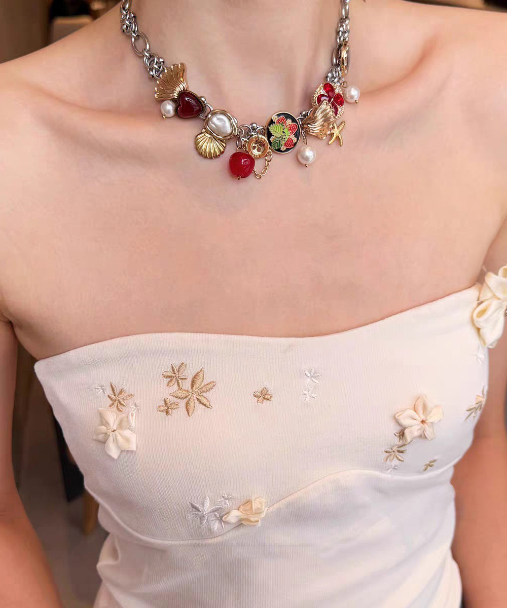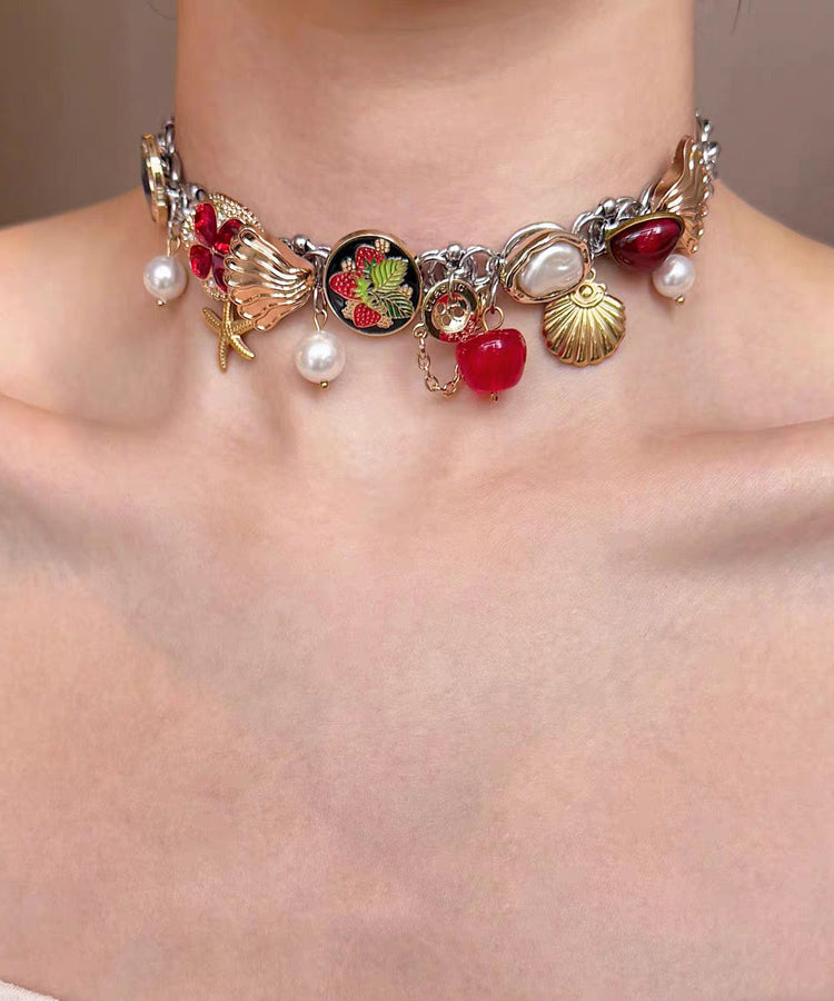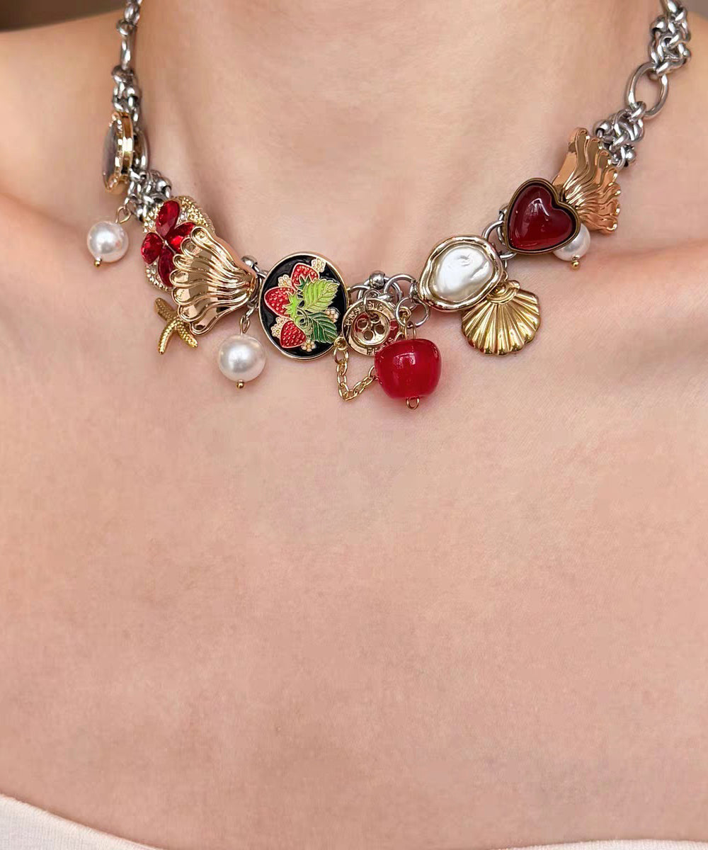 Art Multicolor Stainless Steel Shell Pearl Pendant Necklace