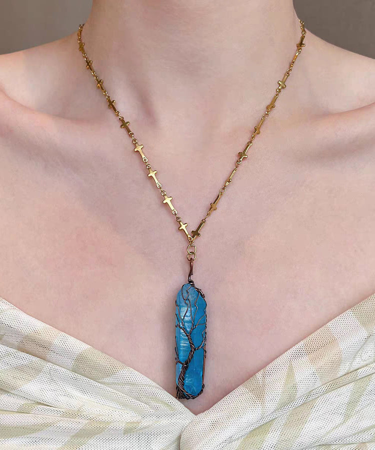 Chic Blue Stainless Steel Crystal Butterfly Beading Pendant Necklace Three-Piece Set