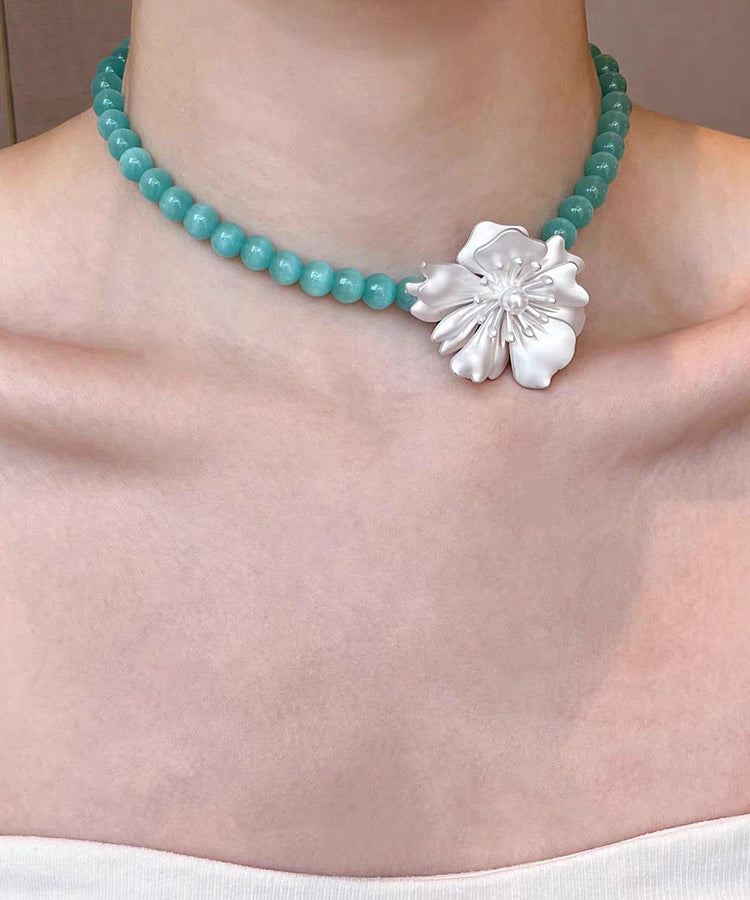 Made of fine Alloy Amazonite Love Floral Pearl Two-PieceSet.