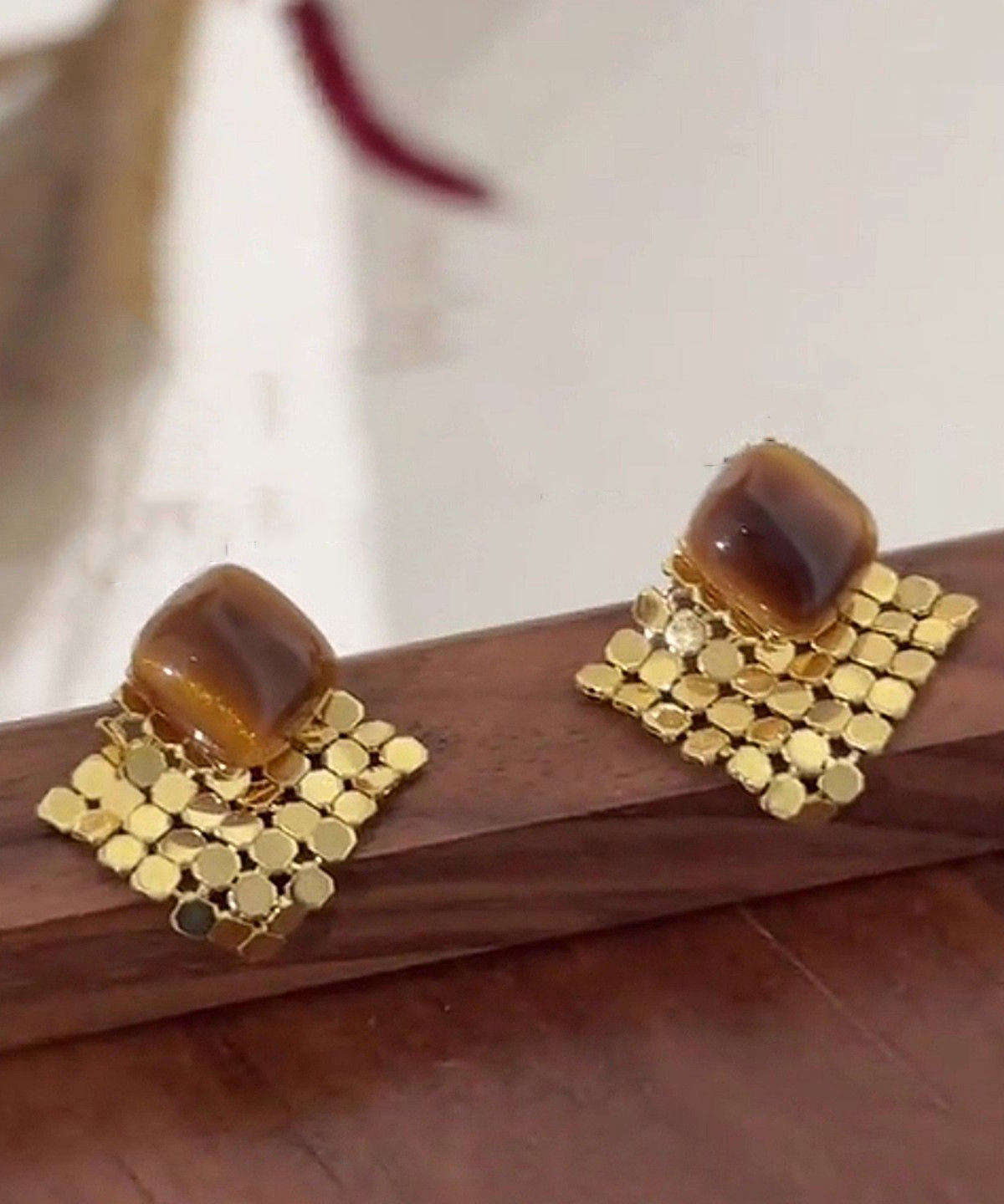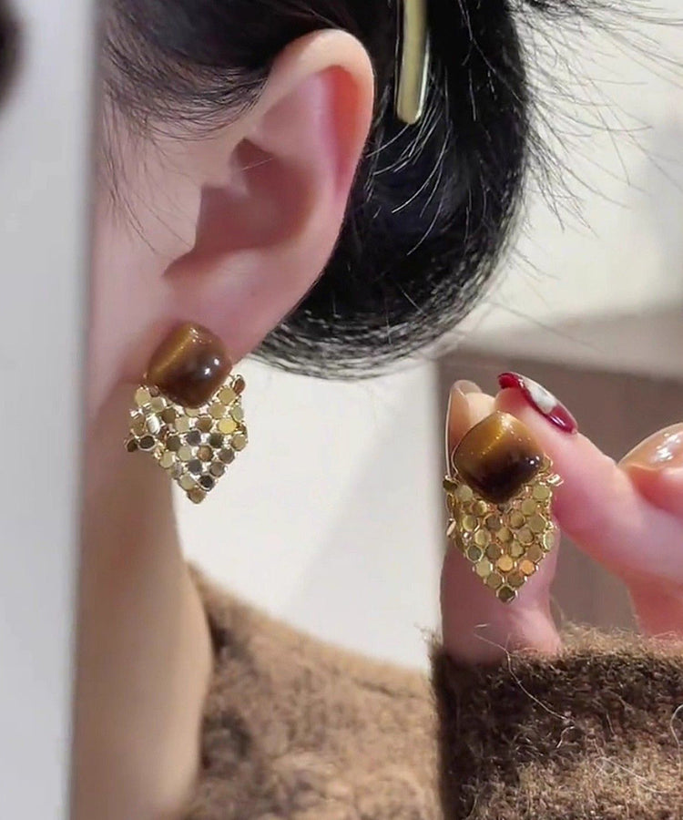 Modern Brown Copper Alloy Sequins TasselStud Earrings