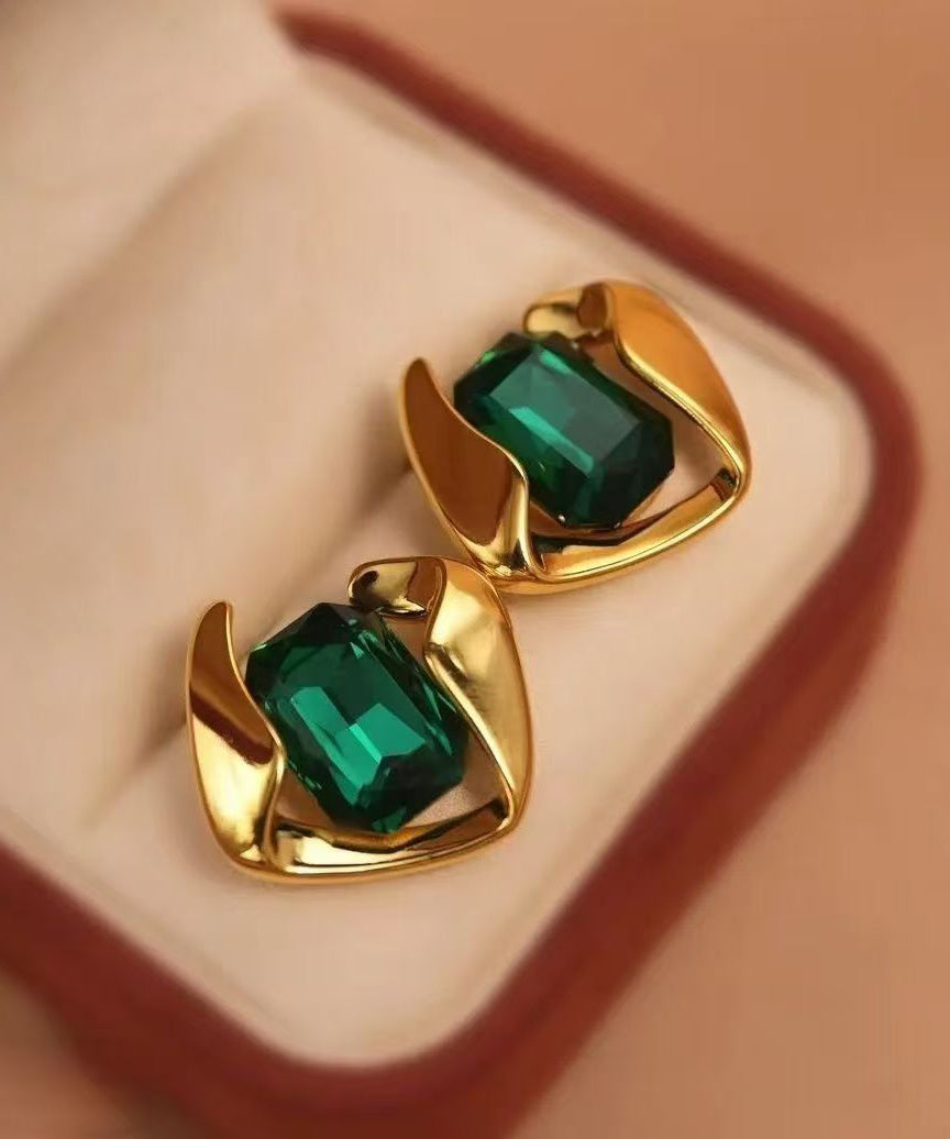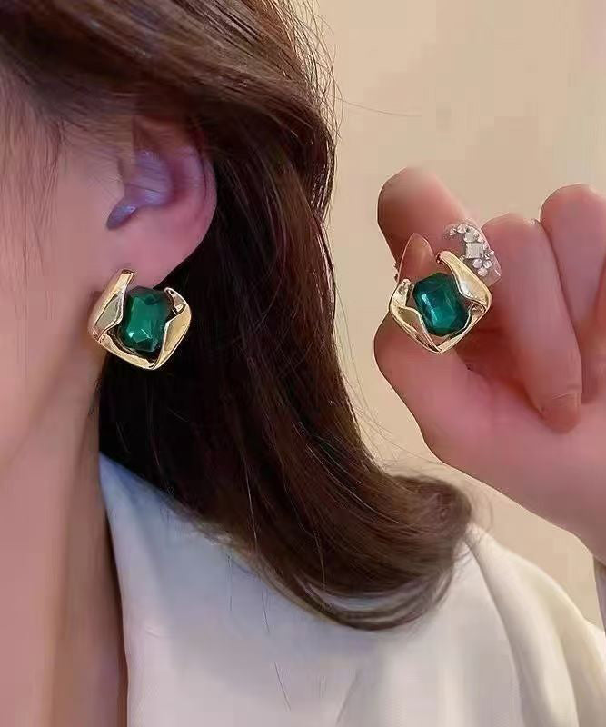 Modern Green Alloy Zircon Square Emerald Stud Earrings