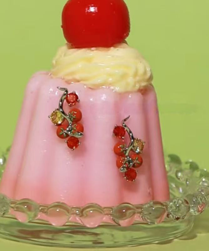 Casual Red Copper Overgild Zircon Dripping Glaze Tomato Stud Earrings