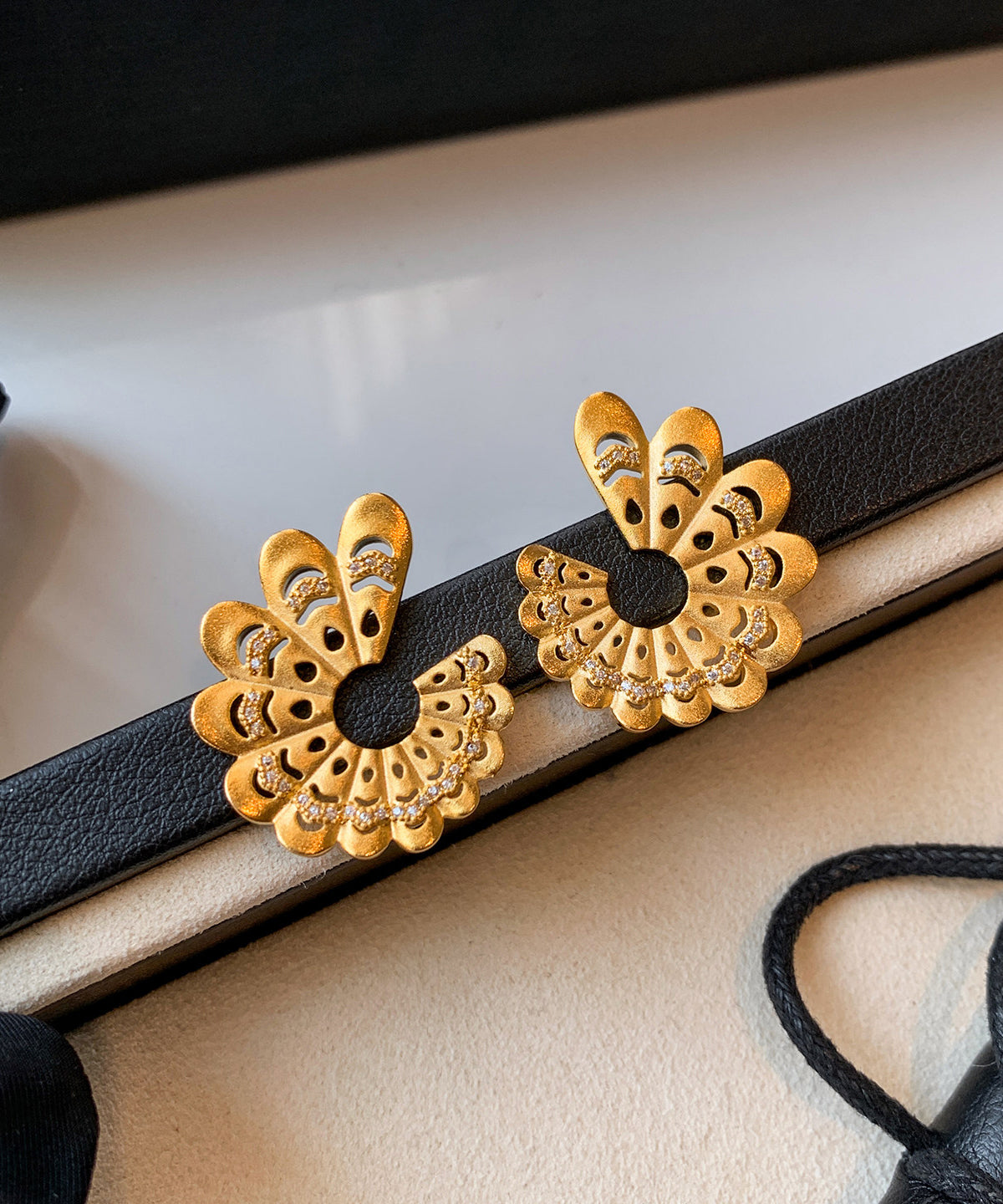 Elegant Golden Hollow Out Fan-shaped Metal Stud Earrings - Omychic