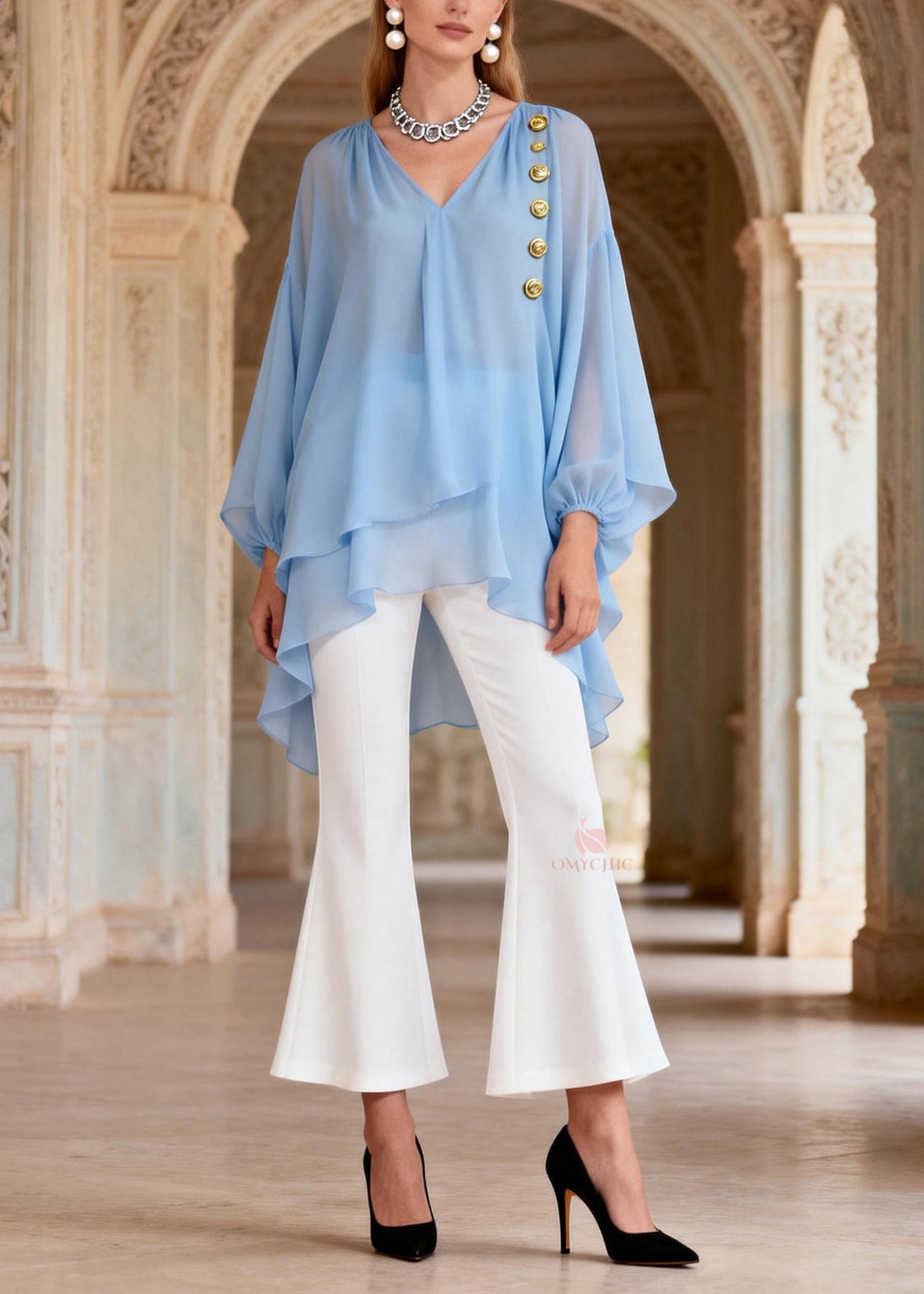 Organic V Neck Top And Pants Chiffon Two Piece Set Outfits Spring