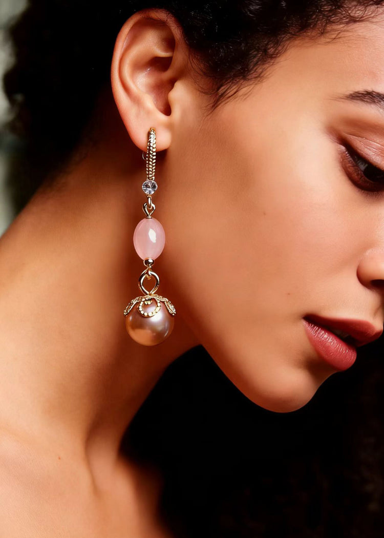 Modern Champagne Pearl Drop Earrings