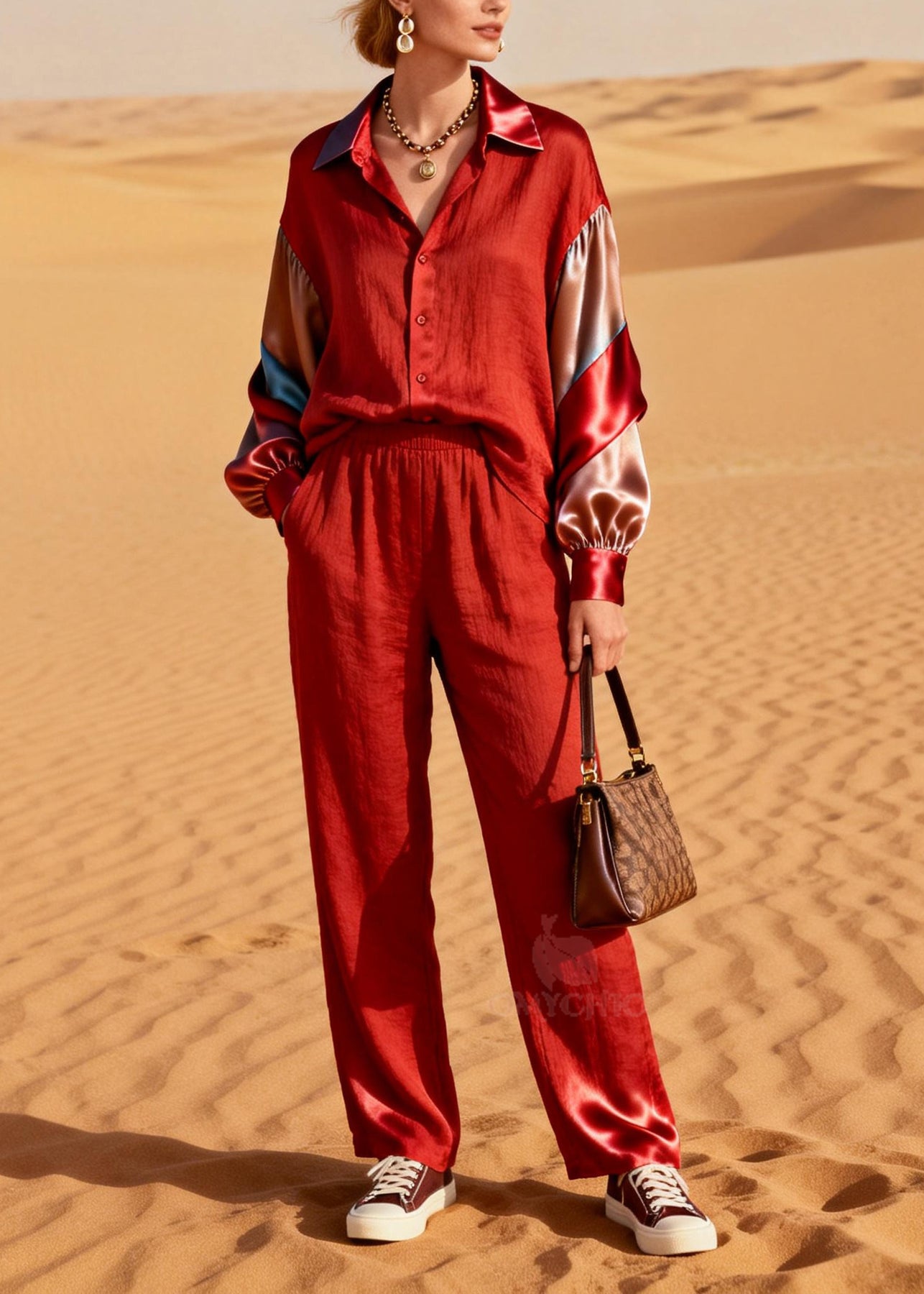 Art Red Peter Pan Collar Patchwork Cotton Two Pieces Set Spring