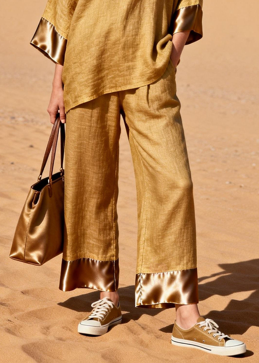 Art Yellow Oversized Patchwork Linen Two Pieces Set Spring