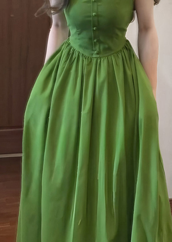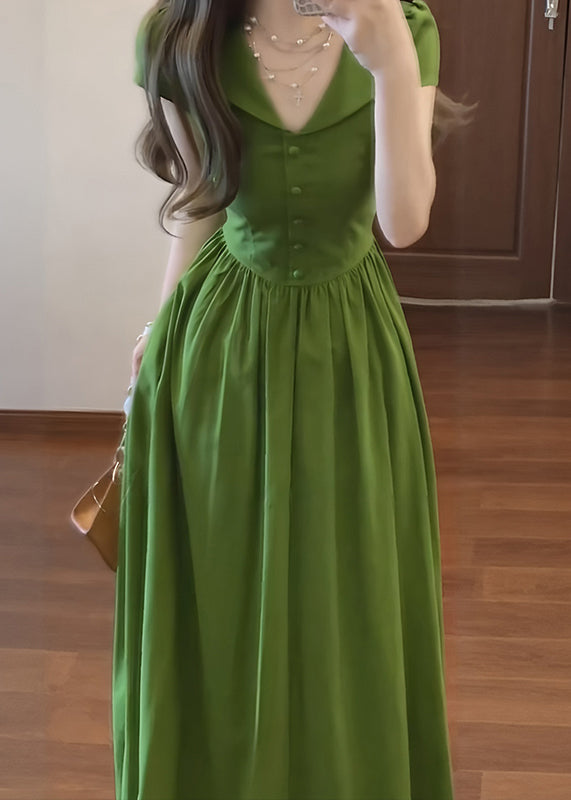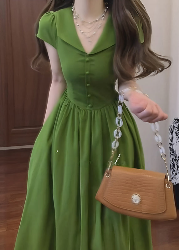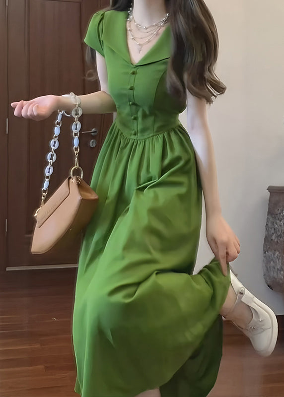 French Green Peter Pan Collar Patchwork Cotton Dresses Summer