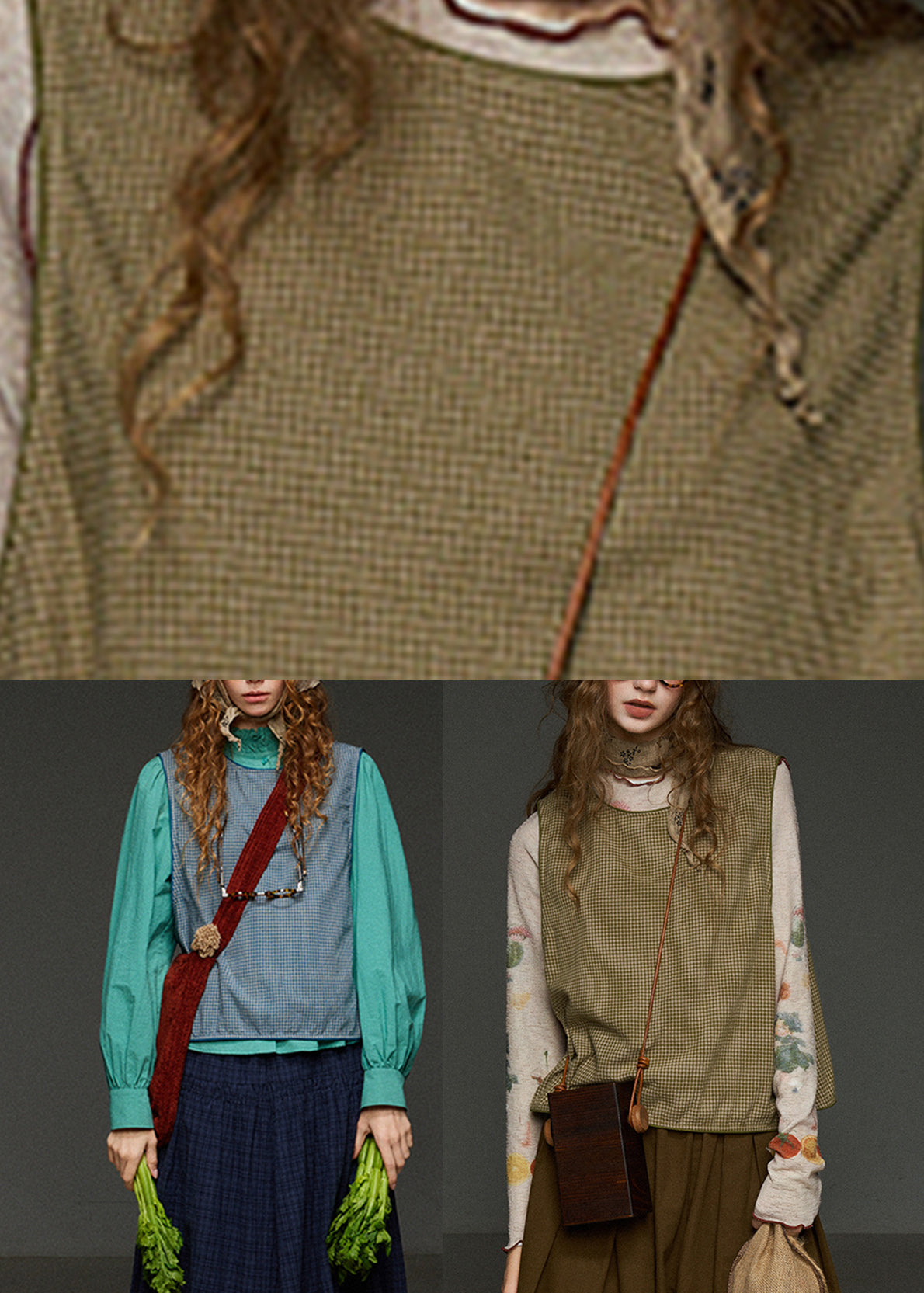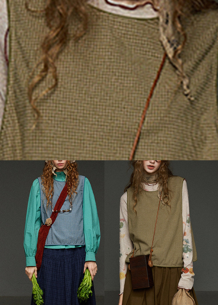 French Green Plaid Oversized Waistcoat Sleeveless